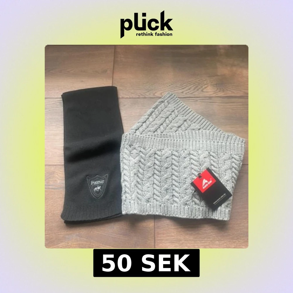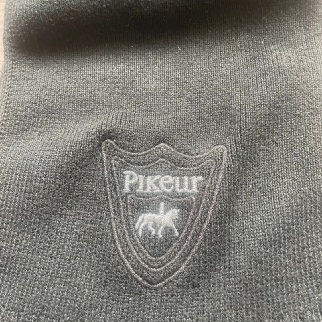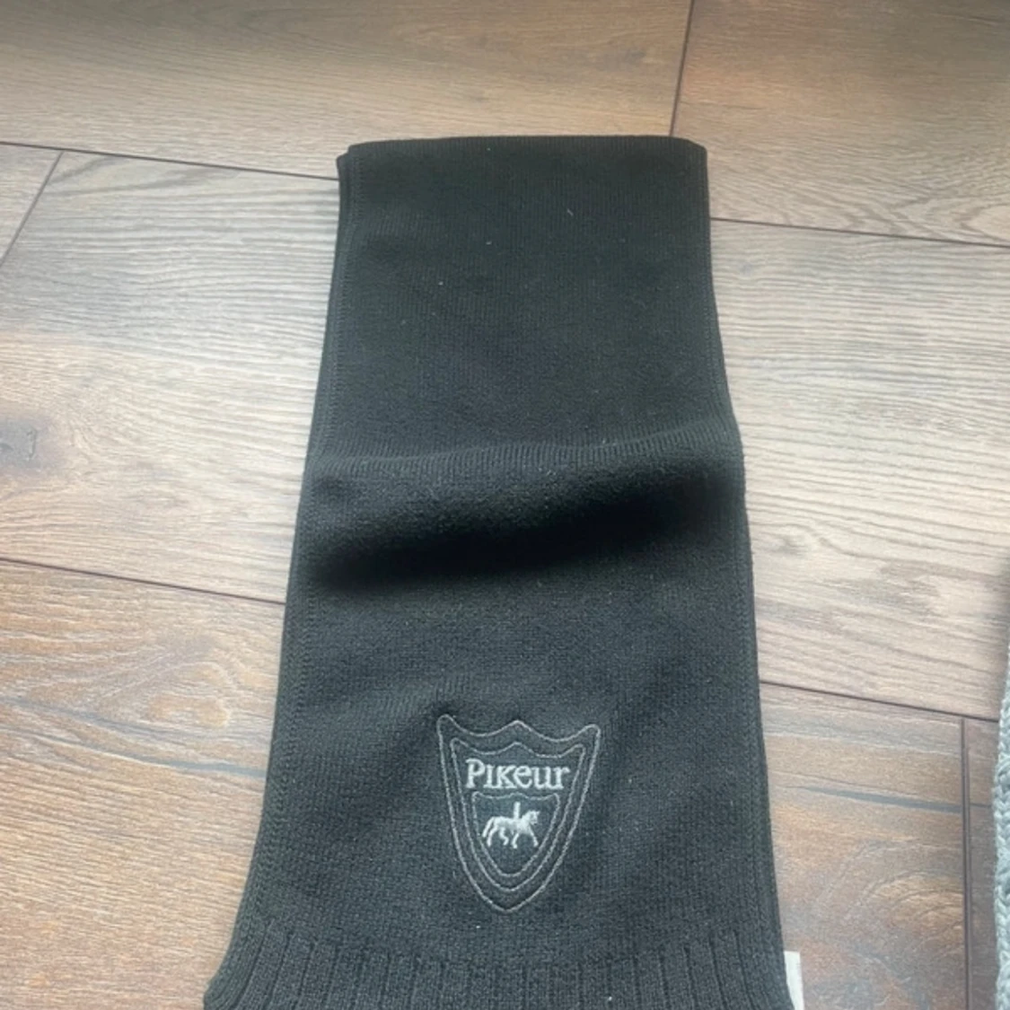 Pikeur och Euro-Star halsdukar. Svart Pikeur, använd fåtal gånger. Grå Euro-Star tubhalsduk, oanvänd med prislapp kvar.