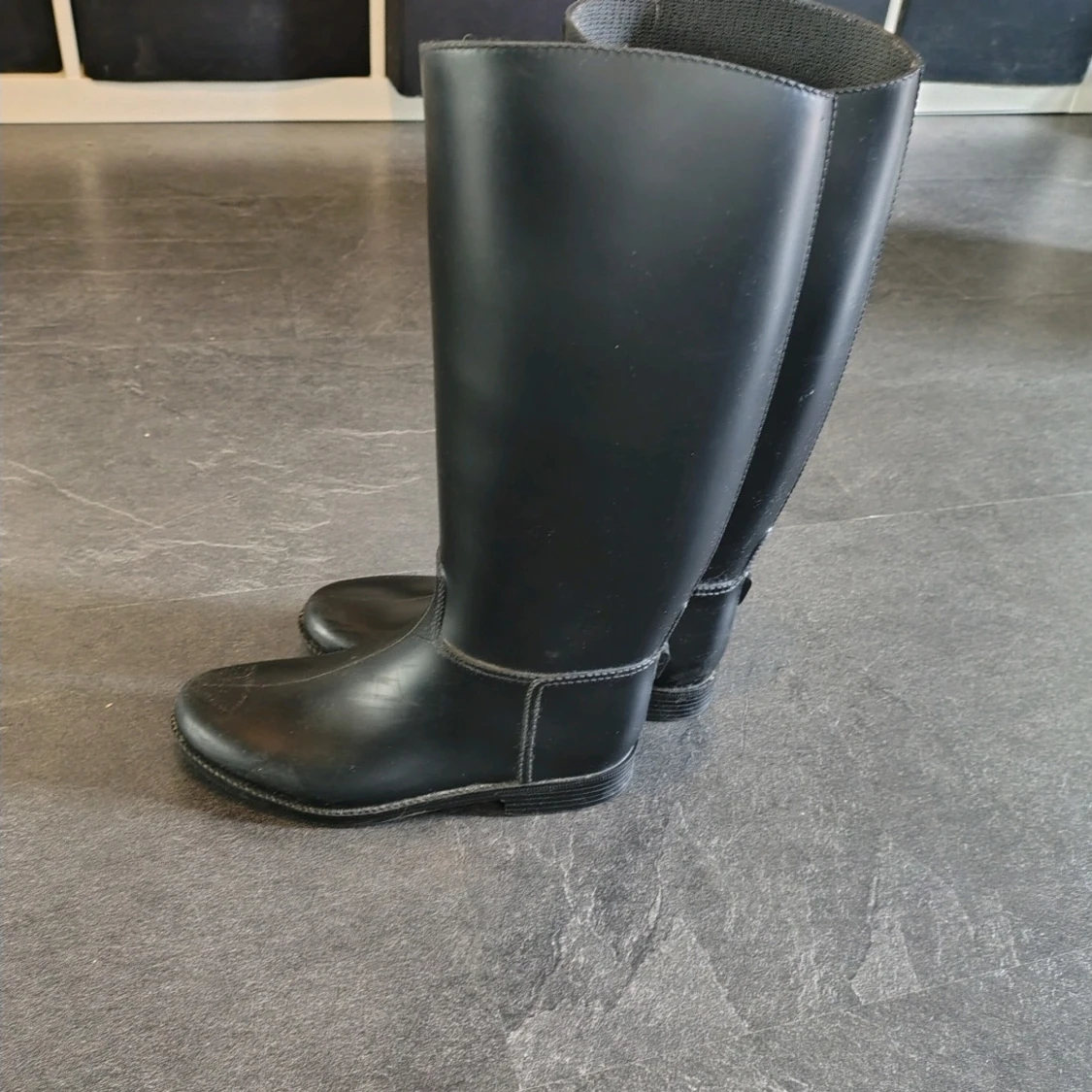 Svarta gummi ridstövlar i storlek 34 använda max 2 terminer på ridskola