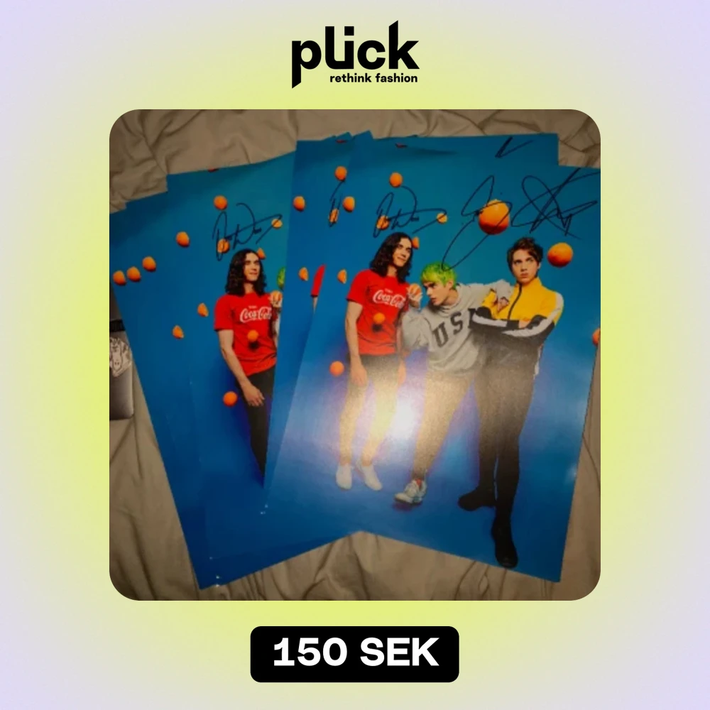 150kr/styck. Alla 11 st är hand signerade av hela bandet. De är i bra skick och har inte sattigts upp. Jag fick tag på dom från en bekant som jobbade under en av deras konserter. Jag har några VIP badges också om det önskas.