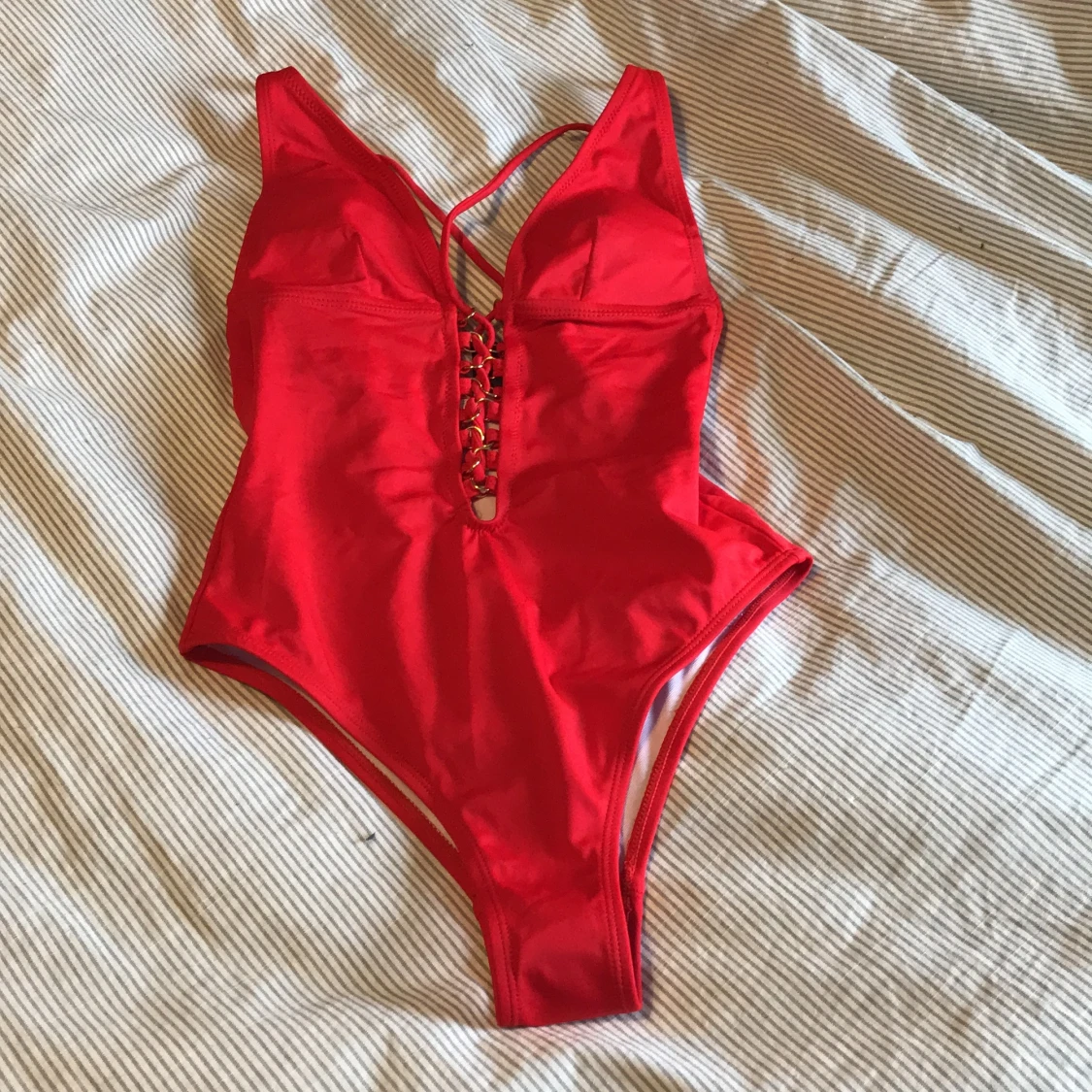 Jag säljer en röd baddräkt som är super fin, aldrig andvänd, alla lappar och skydd sitter kvar så den ej va min storlek! Pm för mer info