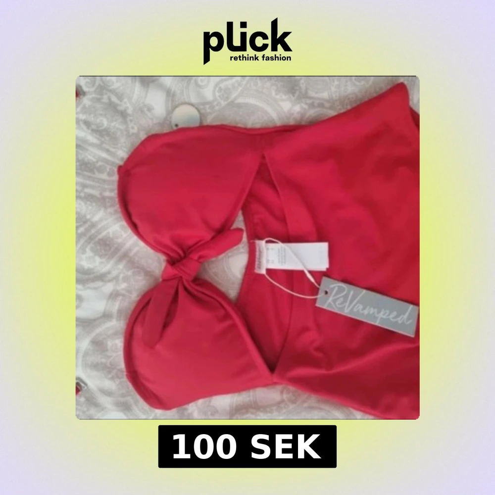 Snygg röd baddräkt från ReVamped med knyt-detalj framtill och avtagbara axelband. Baddräkten har en feminin passform och är tillverkad i ett mjukt material som känns bekvämt mot huden. Perfekt för strand eller pool!