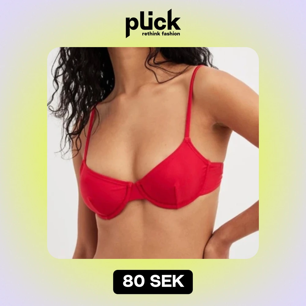 Säljer en snygg röd bikiniöverdel med justerbara axelband. Den har en enkel och stilren design, perfekt för sommardagar på stranden eller vid poolen. Materialet känns mjukt och bekvämt mot huden.