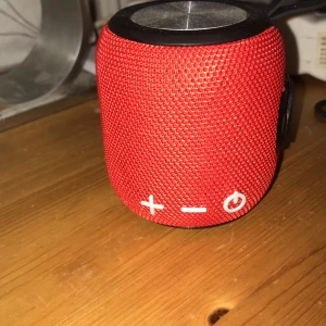 Liten gullig röd högtalare! Behöver inte denna mer har redan en annan! Men ljudet funkar svin bra på denna de är högt och bra ljud!