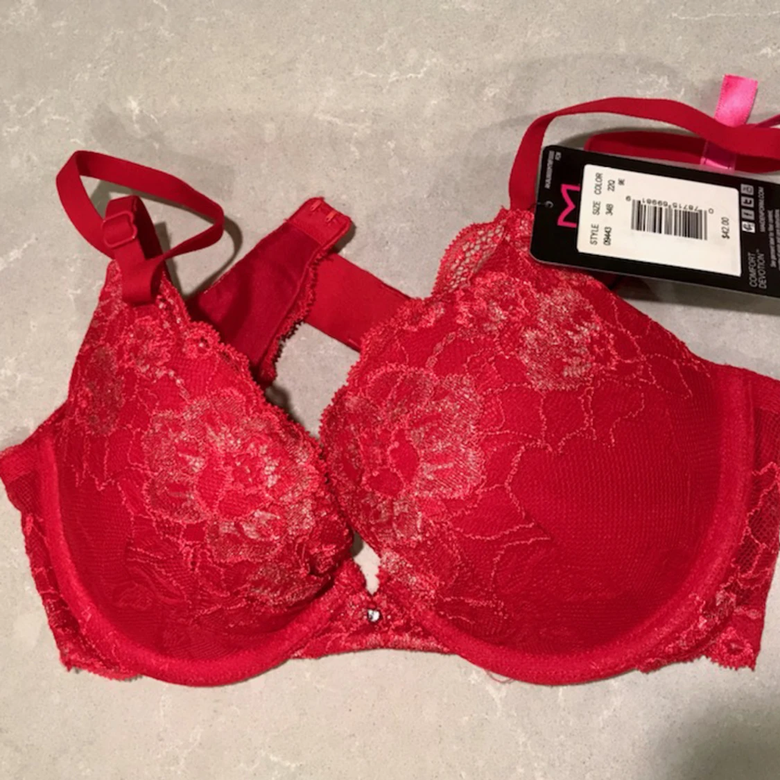 Nypris är 42$, den är helt oanvänd och den ät 34B och är plunge push-up. Bygeln är rätt så mjuk men dem sitter fortfarande på plats. Om du vill så kan du puttra eller fråga om flera bilder ^^