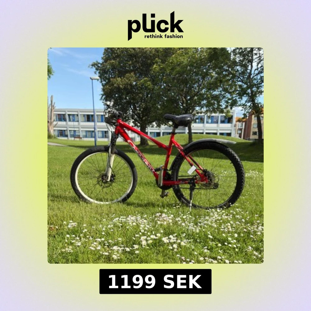 Bilderna visar en röd mountainbike av märket Crescent, modell MTB Alloy 24SP. Cykeln har grova däck, stänkskärmar, och ett bekvämt sadel från Biltema. Perfekt för dig som gillar att cykla i skogen eller till skolan. Utrustad med växlar och handbromsar för extra kontroll. Det bra priset är för att Fram gaffeln på cykeln är trasig och behövs bytas. Sen är den rätt så gammal också så den är lite rostig men funkar magnefikt ändå. Skriv i Dm om du har flera frågor