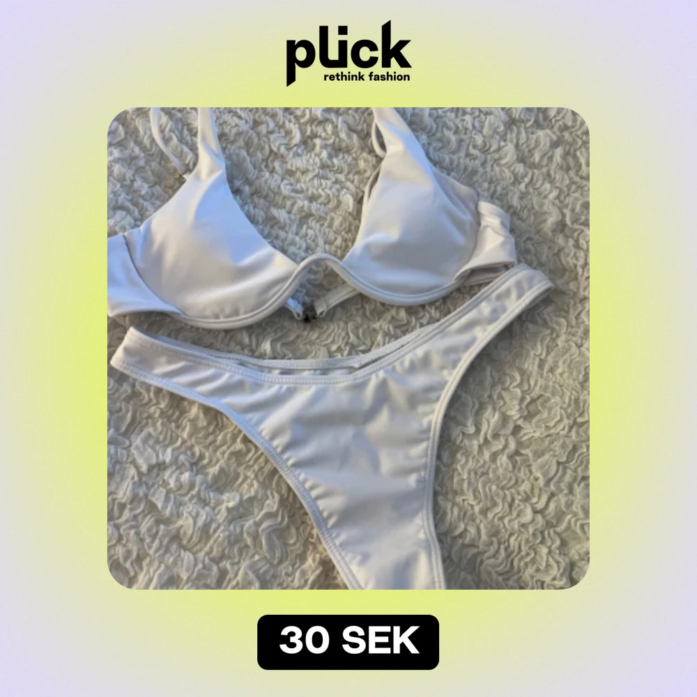 Säljer två snygga bikinis i vitt och rött. Båda är oanvända och i nyskick. Storlek M men sitter mer som stl S.