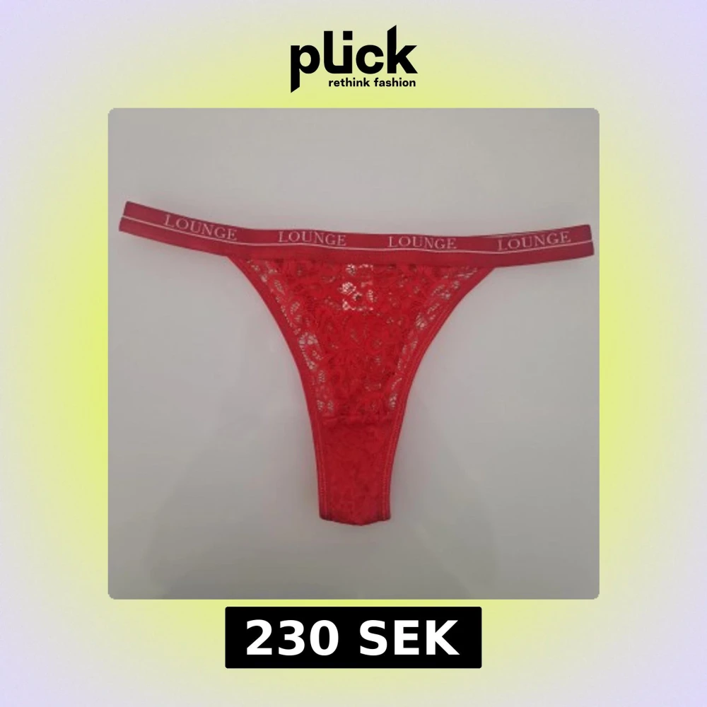 Säljer ett par snygga röda string i spets från Lounge. Endast tvättad efter inköp och har legat i byrålådan sen dess.