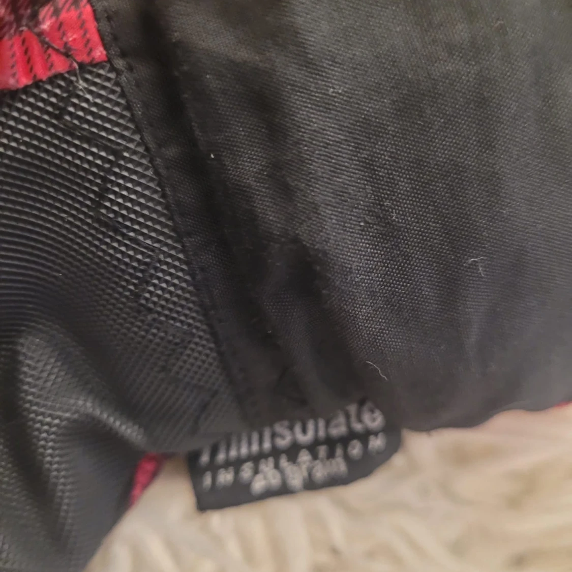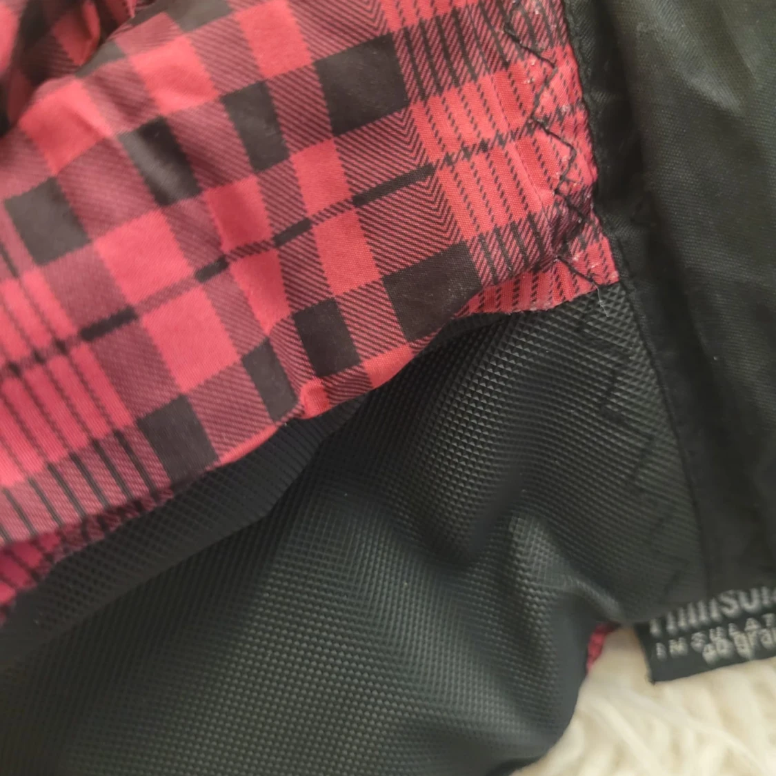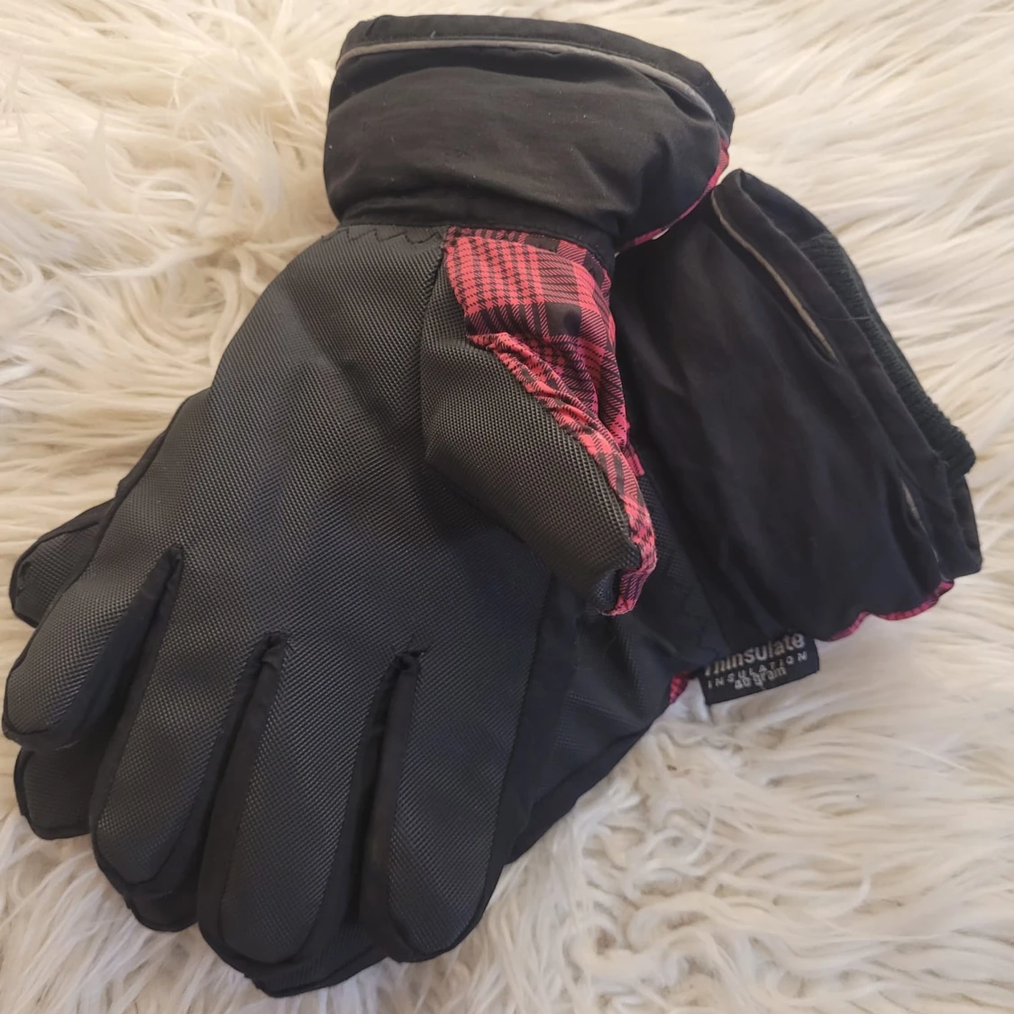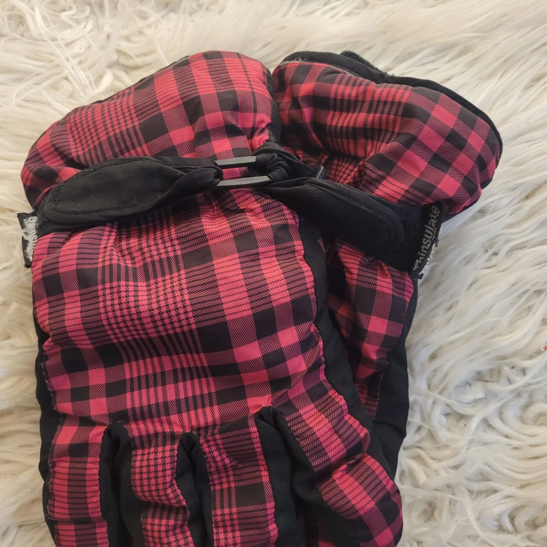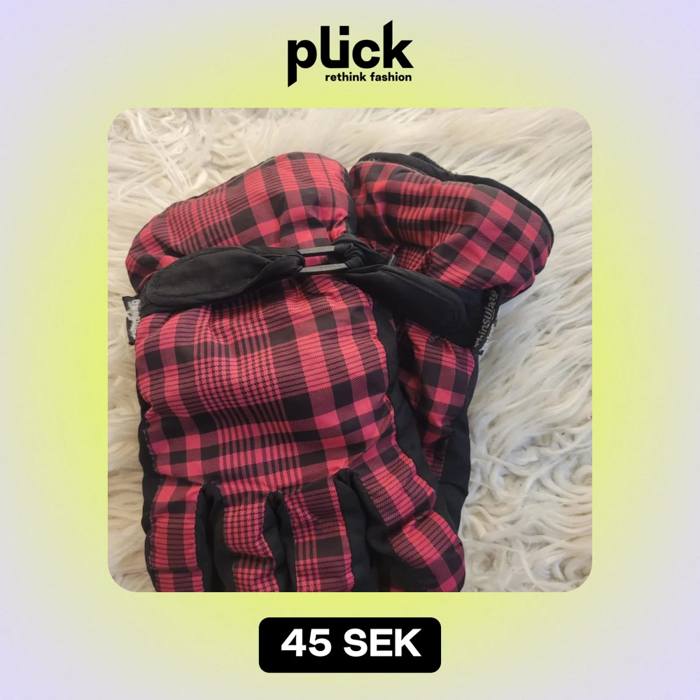 Säljer ett par snygga vinterhandskar med röd-svart rutigt mönster och svart handflata. De är fodrade med Thinsulate för extra värme. Perfekta för kalla dagar! 🧤