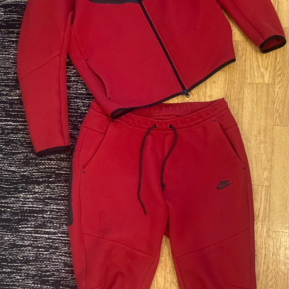 Säljer en röd tech dress från Nike med hel dragkedja och svarta detaljer. Tröjan har långa ärmar, fickor på sidorna och en sportig look. Byxorna lika! Perfekt för dig som gillar streetwear och vill ha något bekvämt och snyggt. Bara tröjan ligger ute för 1299kr just nu! Du får hela setet för mindre. PERFEKT JULKLAPP! 🎄🎅🧑🎄Storlek L, nästan oanvänd