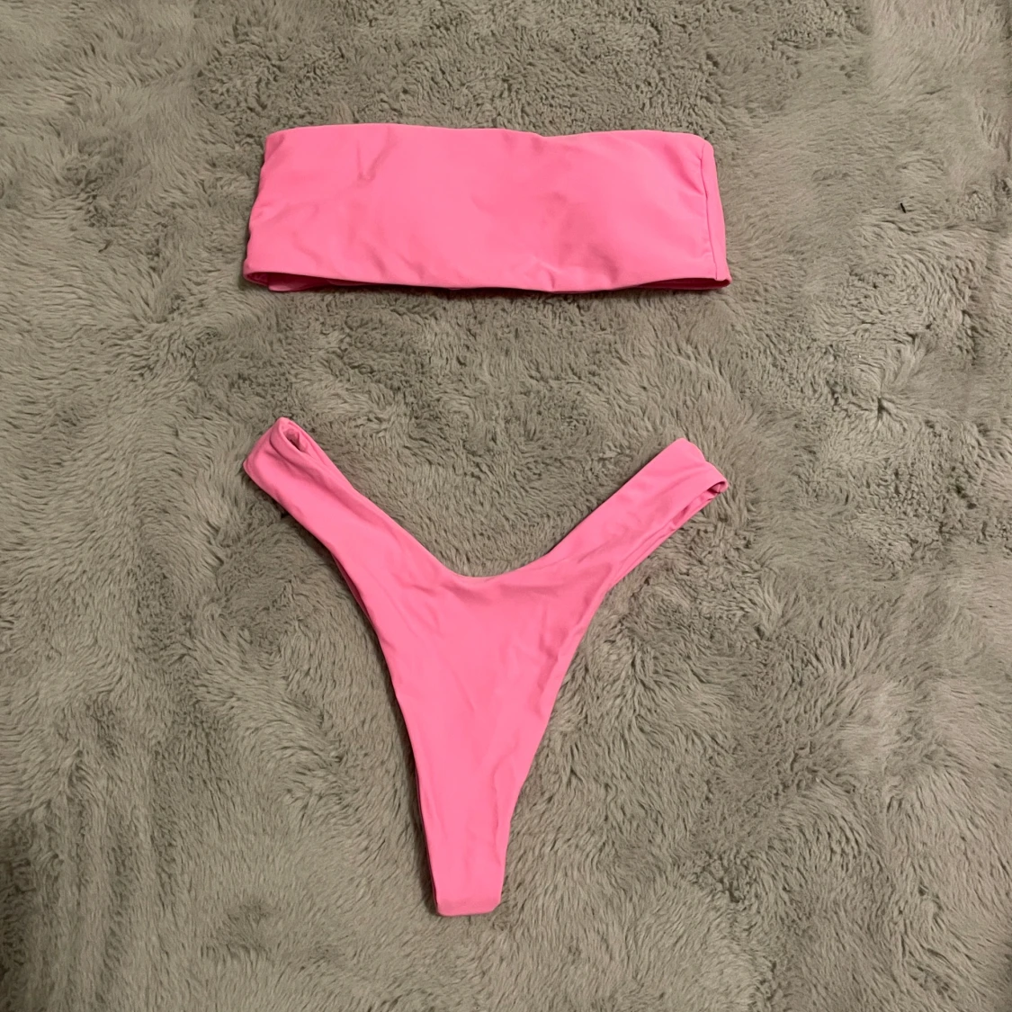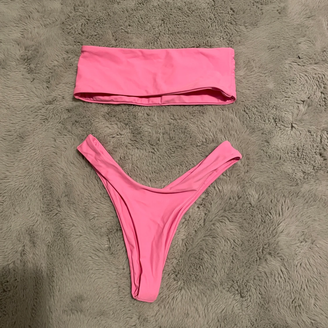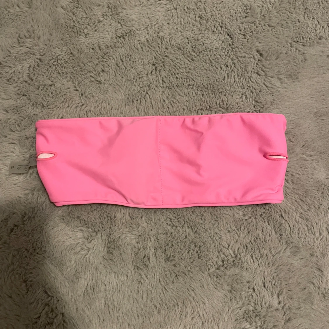 Trendig Bandeau som är högmidjat i rosa och i storlek xs 👙Bikini toppen: Byst 64cm, Underbyst 60cm, Kupa 70A och under. Bikini underdel: Midja 64-90. Det finns padding man kan ta ut om man vill också som man ser på bild 3. Aldrig använt, inga defekter, endast testad och tvättad! Säljer den för toppen är för liten för mig. ❌Visar inte bikinin på mig❌