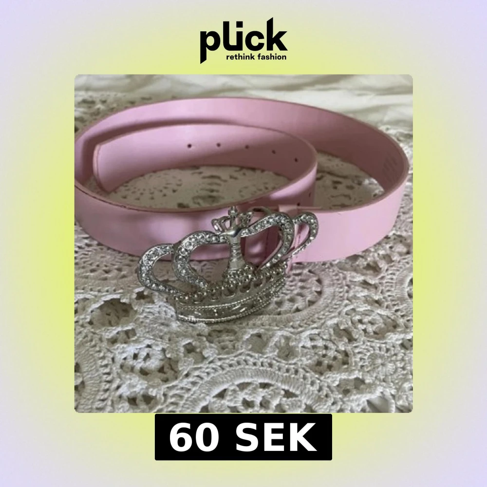 Säljer ett rosa bälte med ett riktigt statement-spänne i form av en glittrande krona med strassdetaljer. Bältet är slätt och har en cool, feminin vibe som passar perfekt till jeans eller kjol. Spännet är i silverfärg och ger en lyxig touch till din outfit. Är lite trasig på vissa delar men syns inte när man har på sig den om du vill se be om bild!!