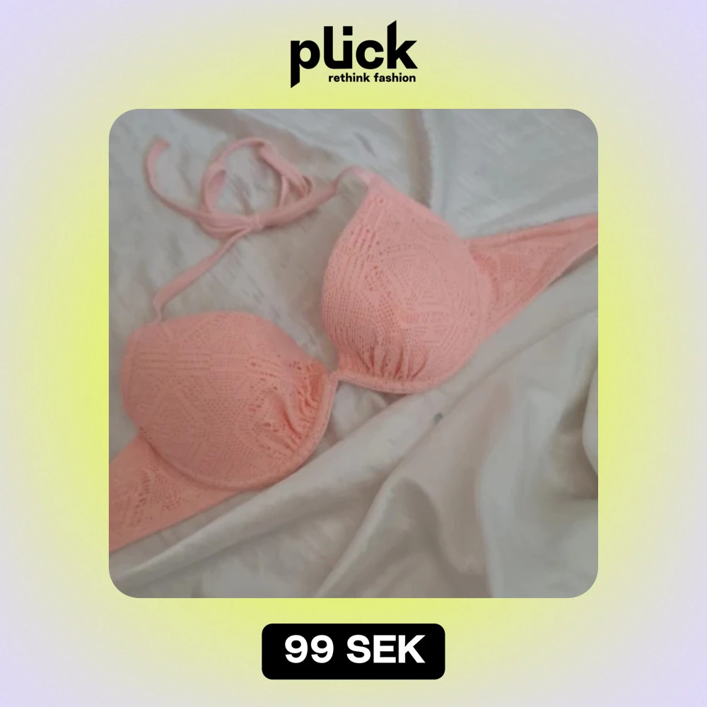 Säljer en superfin rosa bikiniöverdel från H&M. Den har en snygg spetsdesign och knytband i nacken för en perfekt passform. Perfekt för sommarens alla stranddagar! 💖
