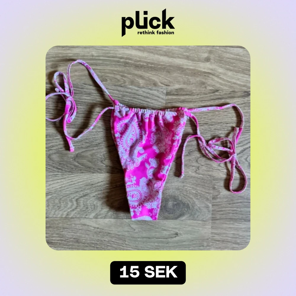 Säljer en superfin rosa bikiniunderdel från Shein. Den har ett snyggt paisleymönster i vitt och knytband på sidorna för perfekt passform. Perfekt för sommarens alla badäventyr! 🌸 Aldrig använda!