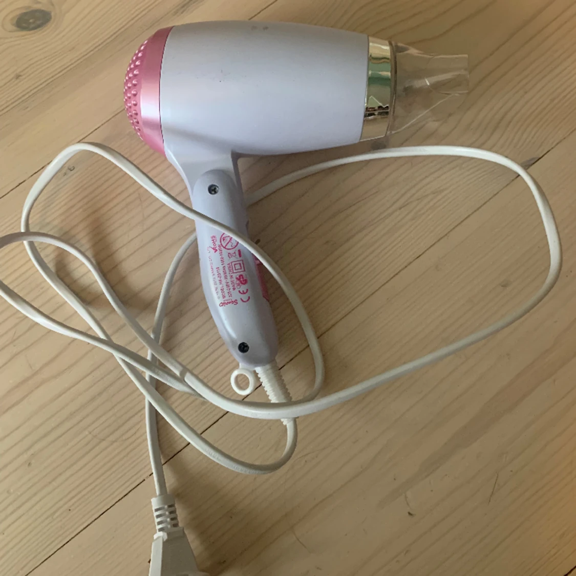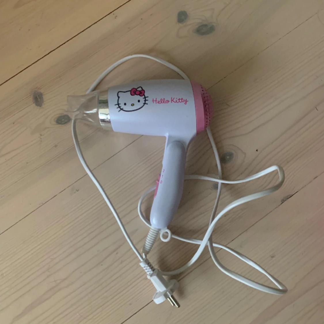 En hellokitty hårfön eller hårblås. Det finns två olika stadier, en ljummen och en lite varmare. Den har även en liten plast grej längst fram som man kan ta av och vrida på. Den funkar på riktigt. Köparen står för frakt och pris kan sänkas!!😀