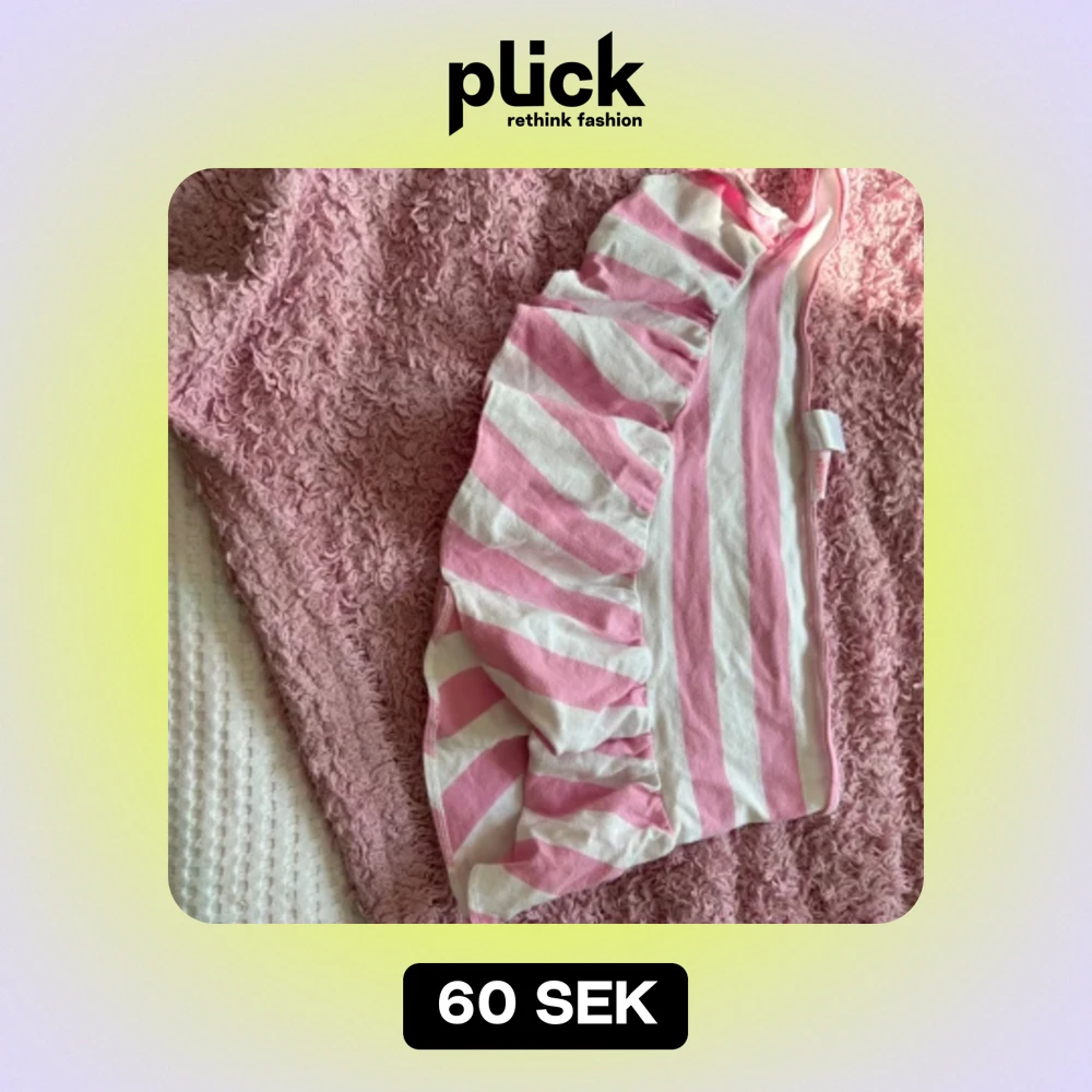 Säljer en superfin rosa och vit randig bikiniöverdel med volangdetaljer. Perfekt för sommaren och strandhäng! Den har en söt och lekfull stil som verkligen sticker ut. Passar perfekt för en dag vid poolen eller stranden.