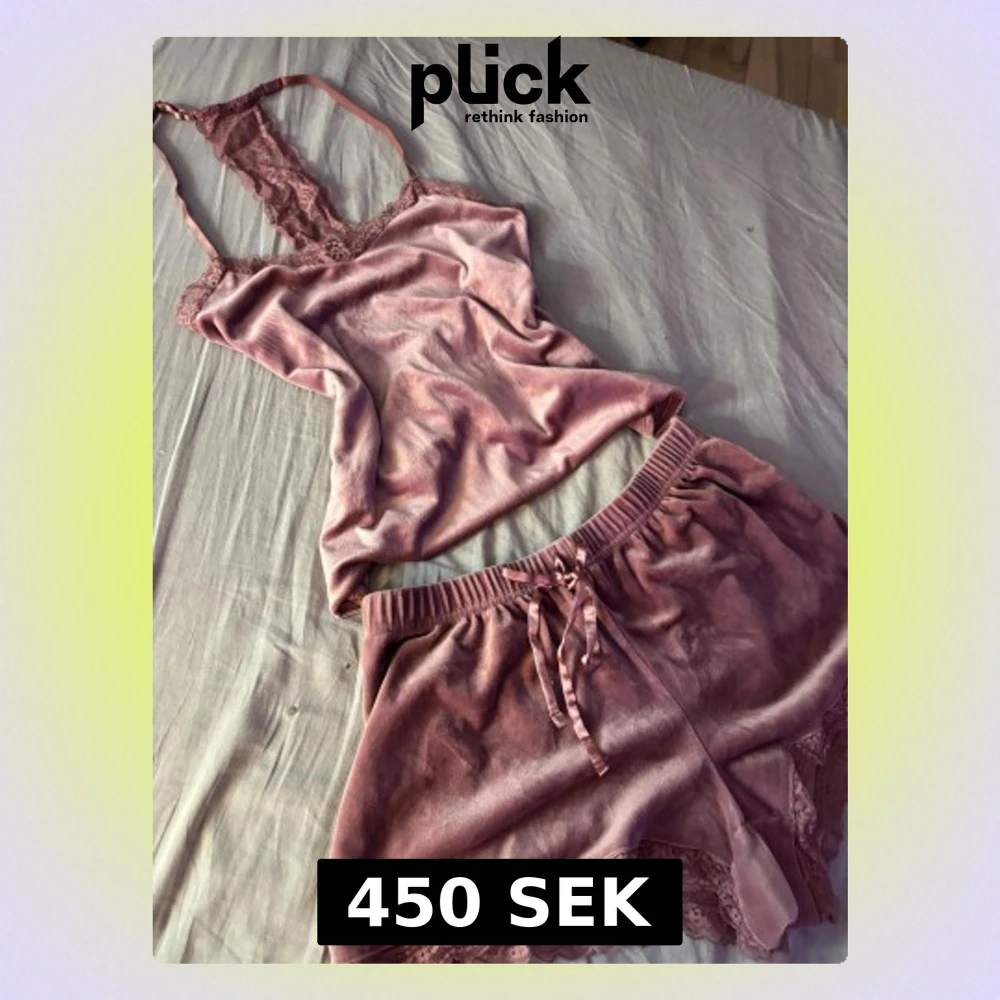 Säljer ett snyggt pyjamas set i sammet ifrån hunkemöller som är i väldigt bra skick. Väldigt bekväm är den också dessutom! Det är storlek S på toppen och så är det storlek M på shortsen.
