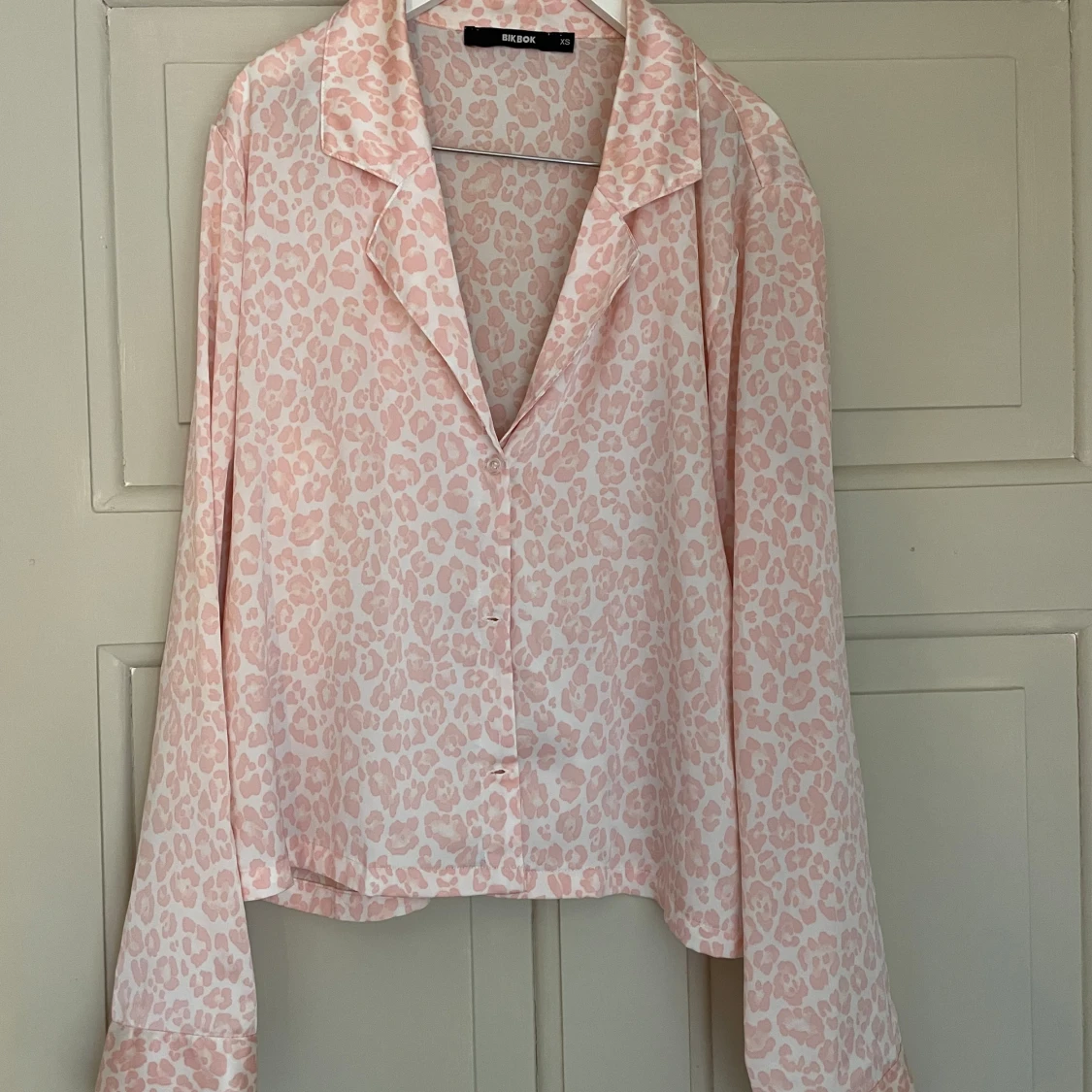Ett rosa pyjamasset med leopardmönster, skjorta+byxor i skönt silketmaterial. Köpt på BikBok för flera år sen. Säljer då det är en aning för litet och inte kommer till användning. Väldigt bra skick (inga defekter)