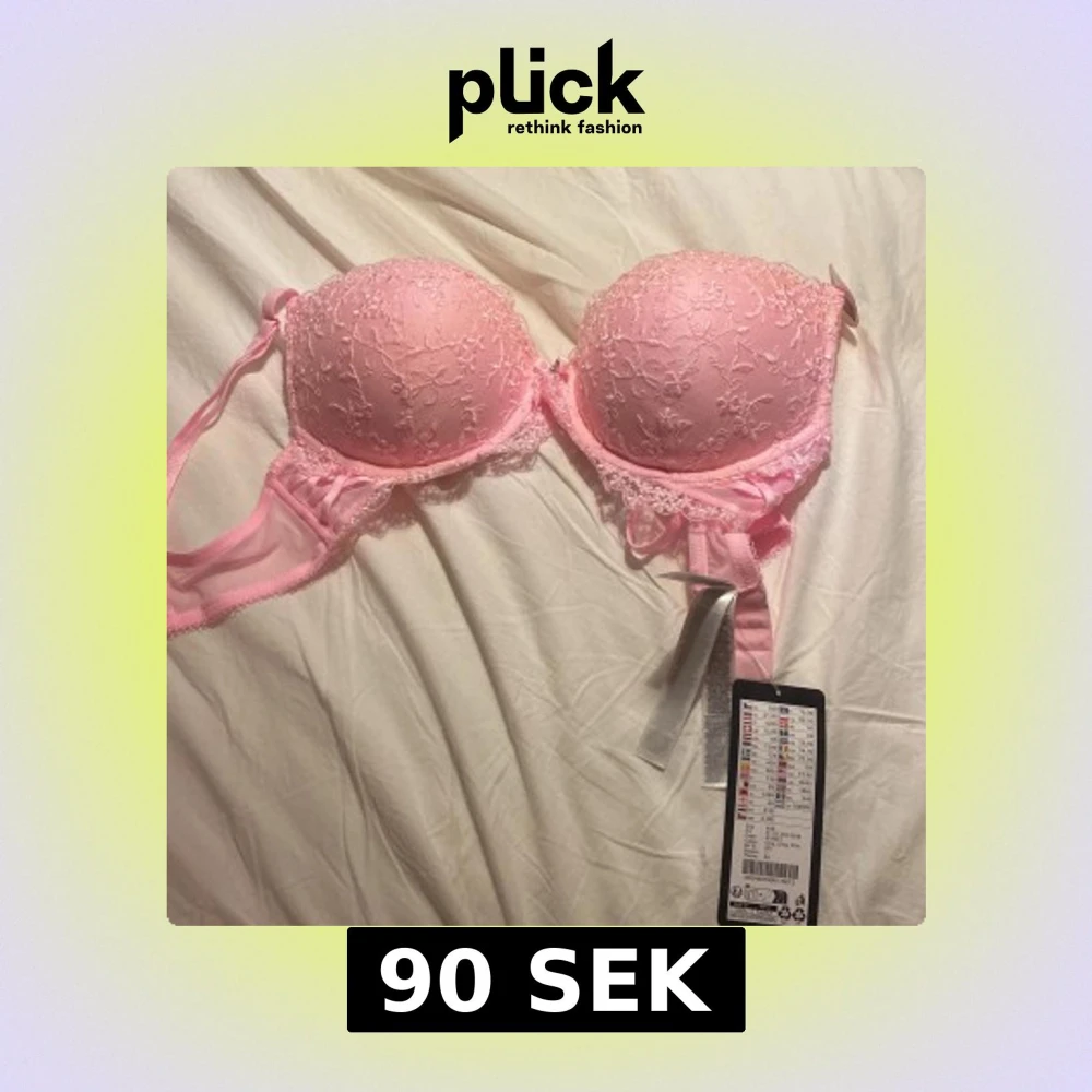 Säljer en söt rosa bh med spetsdetaljer och super push-effekt. Den har justerbara axelband och en elegant design som ger extra lyft. Perfekt för att känna sig extra fin. Säljer pågrund av att jag köpte fem storlek. Helt oanvänd!