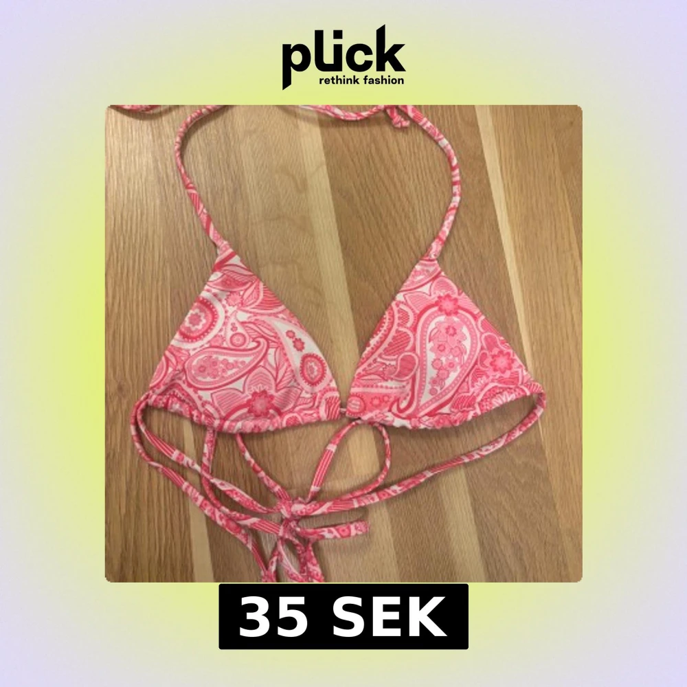 Jag säljer denna sjukt snygga rosa vita triangel bikini topp då den är för liten. Den har endast används ett par gånger och är helt fräsch. Säljer även en likadan i blå, ifall man köper båda kan man få de billigare!