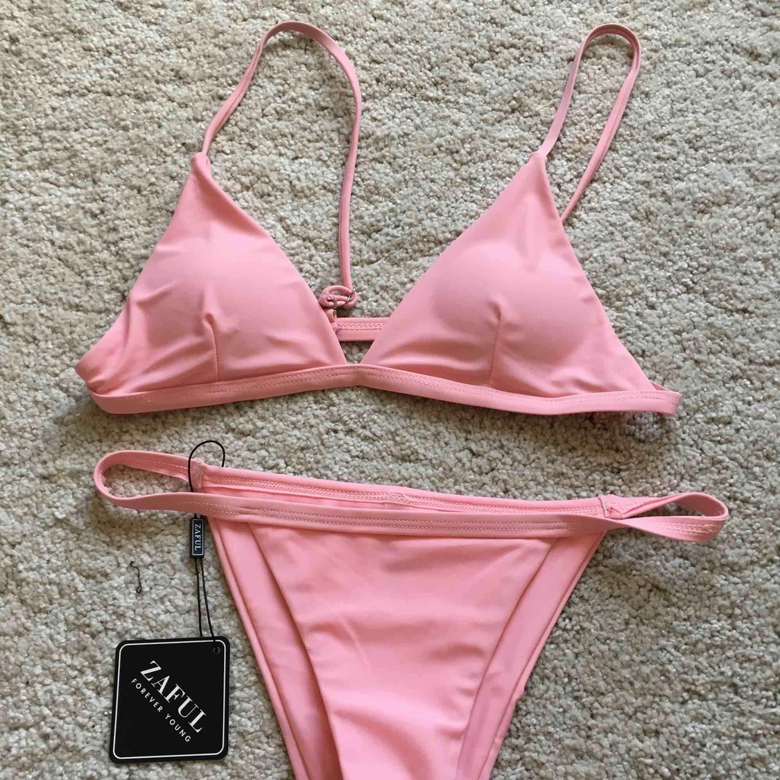 Ny storlek medium! Underdelen är som en S medans överdelen funkar s/m Super najs! Tyvärr är överdelen lite lös på mig