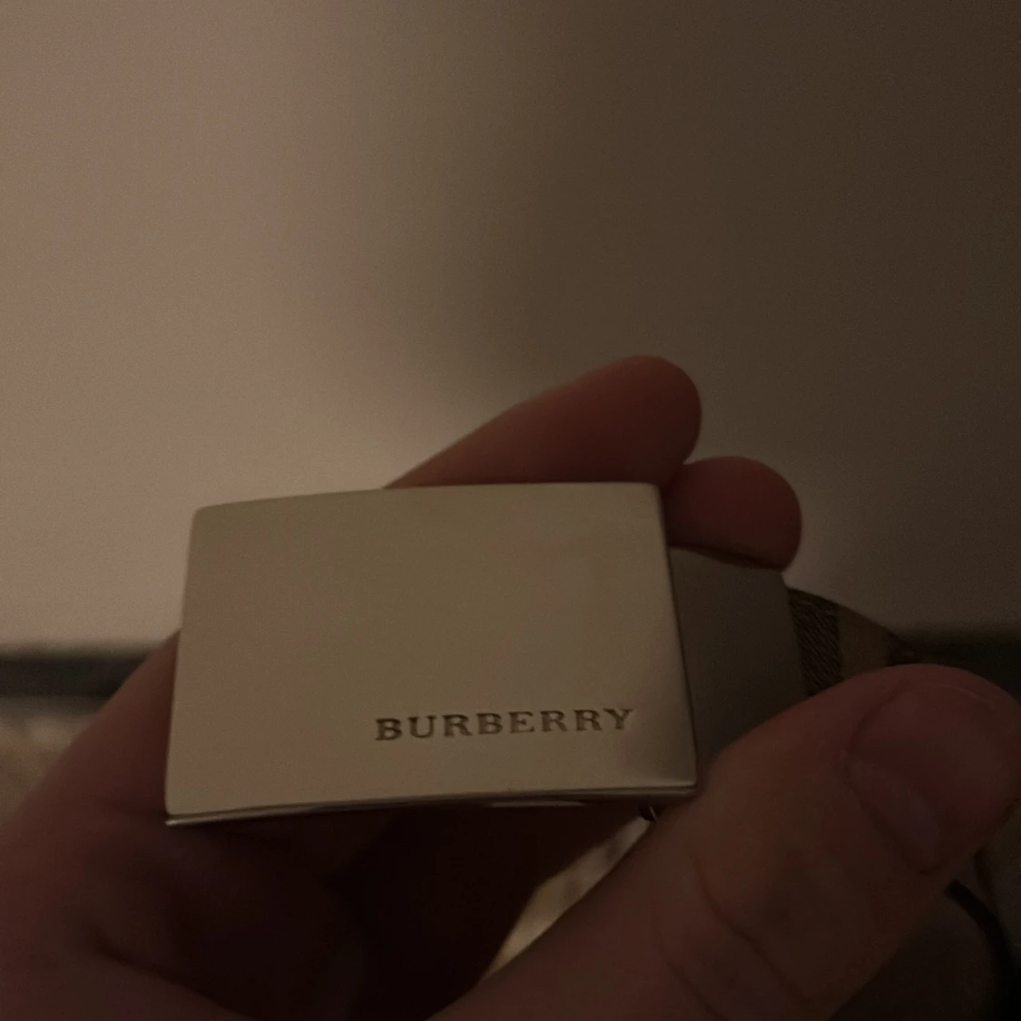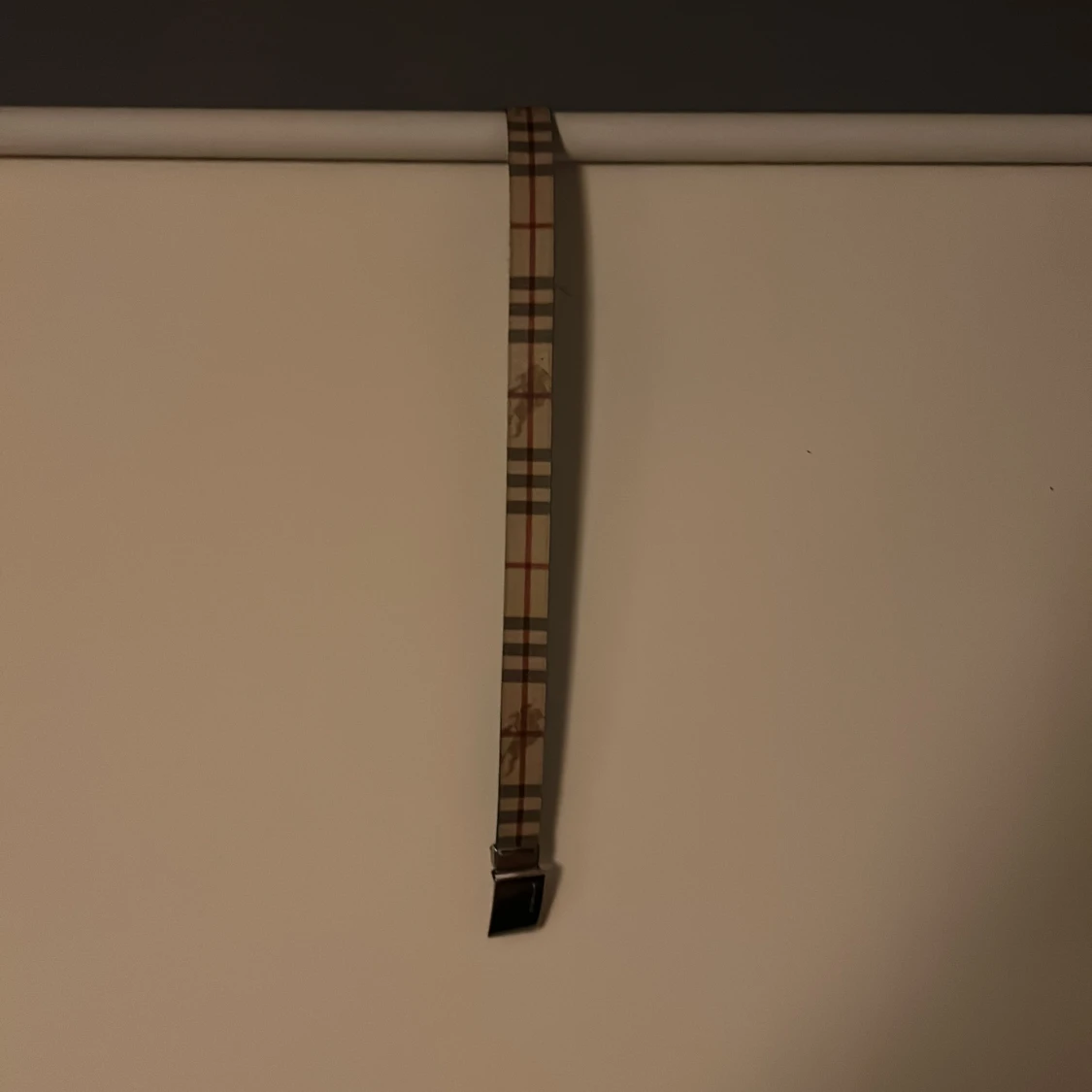 Snyggt bälte från Burberry med klassiskt rutigt mönster i beige, svart och rött. Som är gjort i Italien ( se bild 4 ) bältet är 105 mc långt.