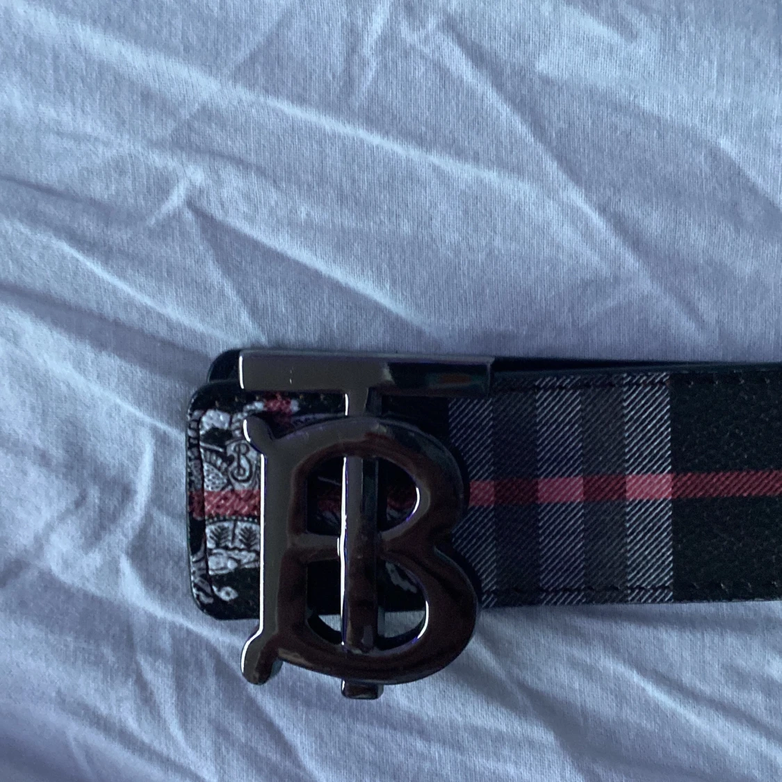 Säljer ett snyggt rutig Burberrybälte med ett coolt metallspänne. Bältet har ett klassiskt rutmönster i svart, grått och rött, perfekt för att ge din outfit en extra edge. Det är i bra skick och passar perfekt till både vardag och fest. Spännet har en unik design som verkligen sticker ut! Bältet passar ungefär 10-14 åringar. Priset kan diskuteras vid snabb affär.