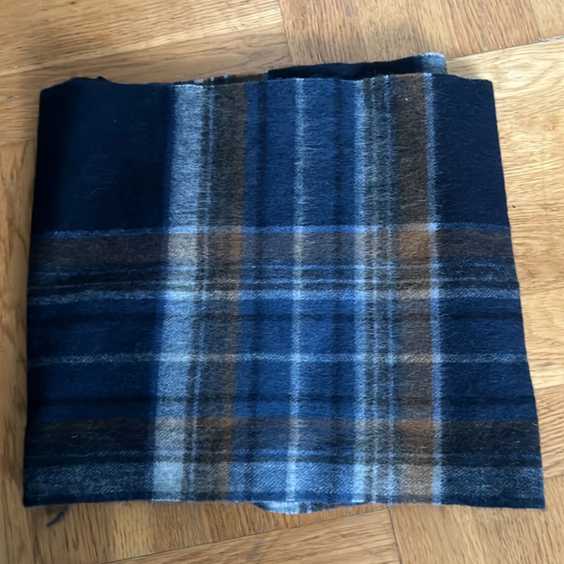 Snygg halsduk från Bläck i rutigt mönster med marinblå, grå och bruna toner. Mjuk och varm känsla, perfekt att slänga runt halsen när det är kallt ute. Fransar i ändarna ger en chill vibe och den passar till de flesta jackor.