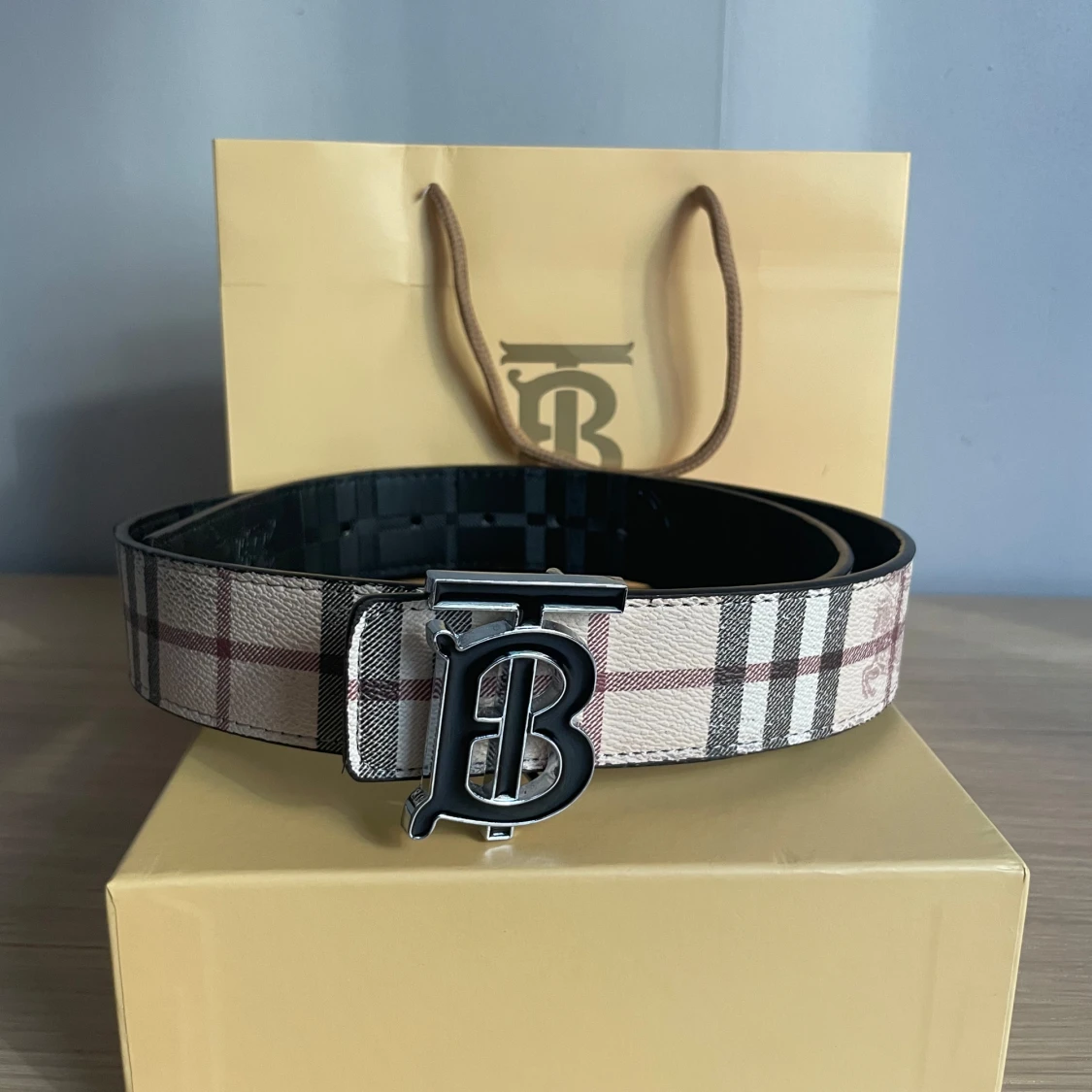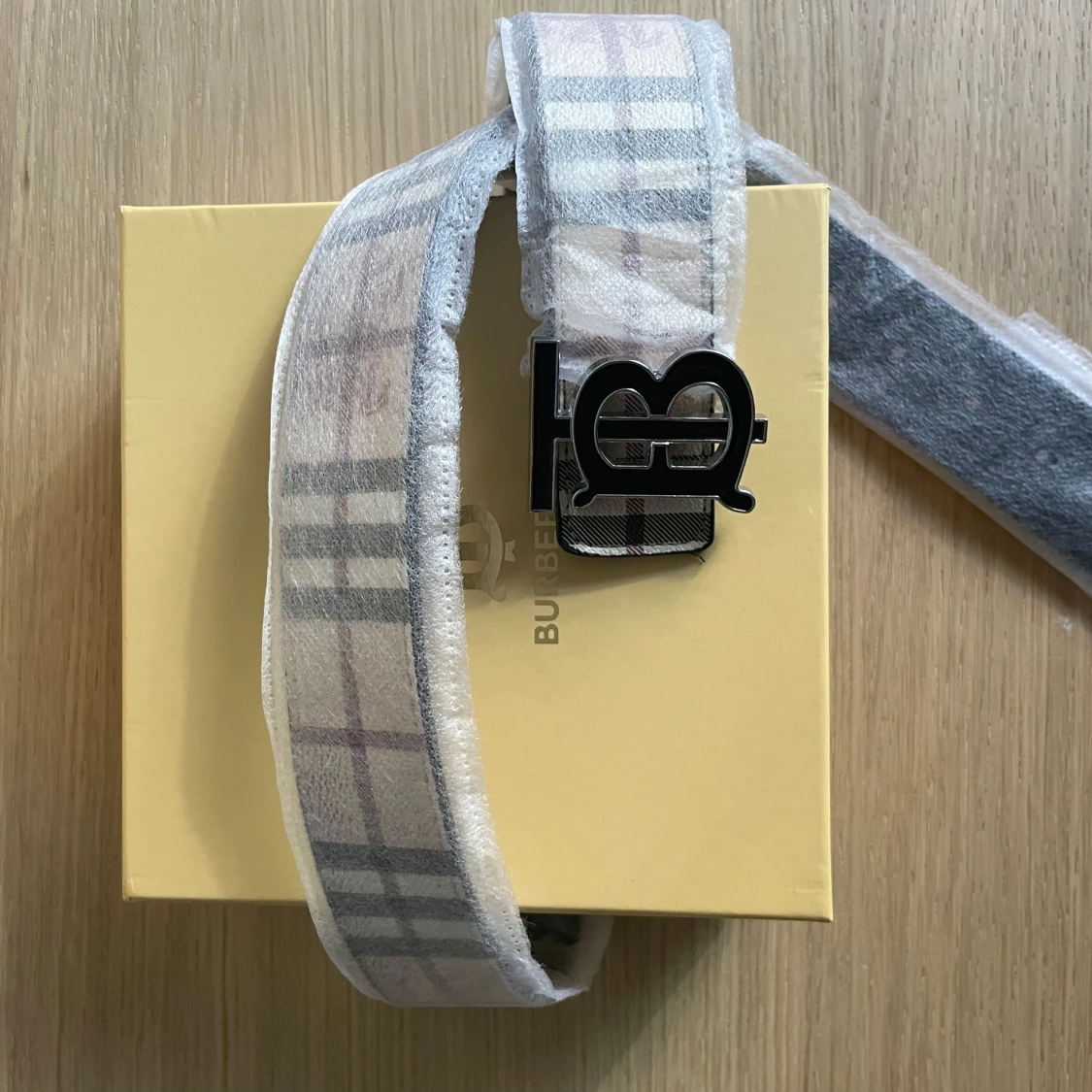 Rutig Burberry bälte med B-spänne