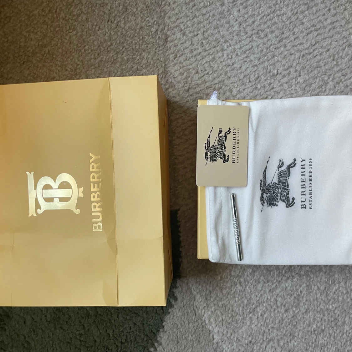 Snyggt Burberry bälte med klassiskt rutigt mönster i beige, grått och rött. Bältet har ett stort metallspänne med Burberrys ikoniska B-logga i svart. Kommer med originalförpackning, dustbag och certifikat. Perfekt accessoar för att lyfta din outfit.