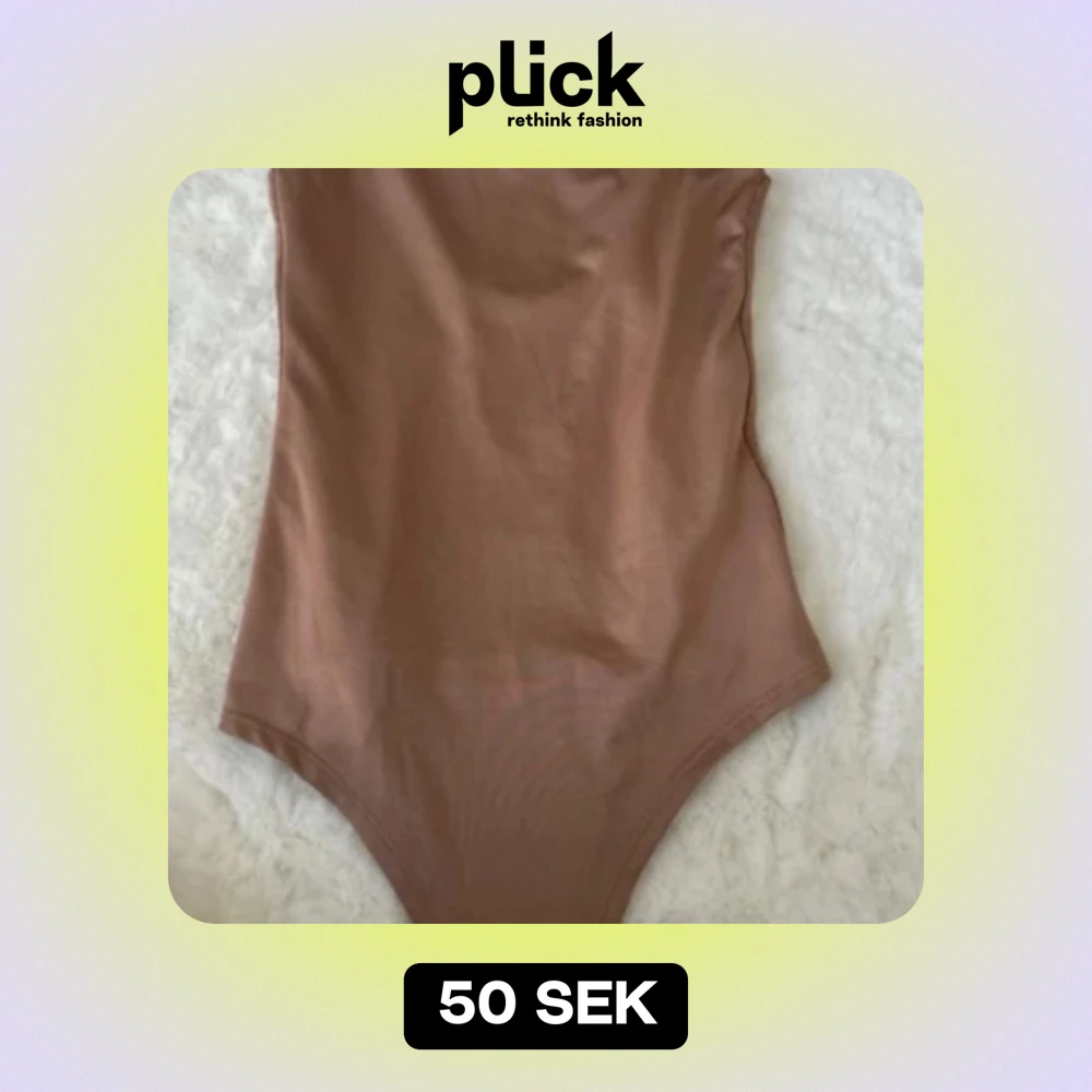 En brun baddräkt med enkel design. Baddräkten har en öppen rygg och är ärmlös.