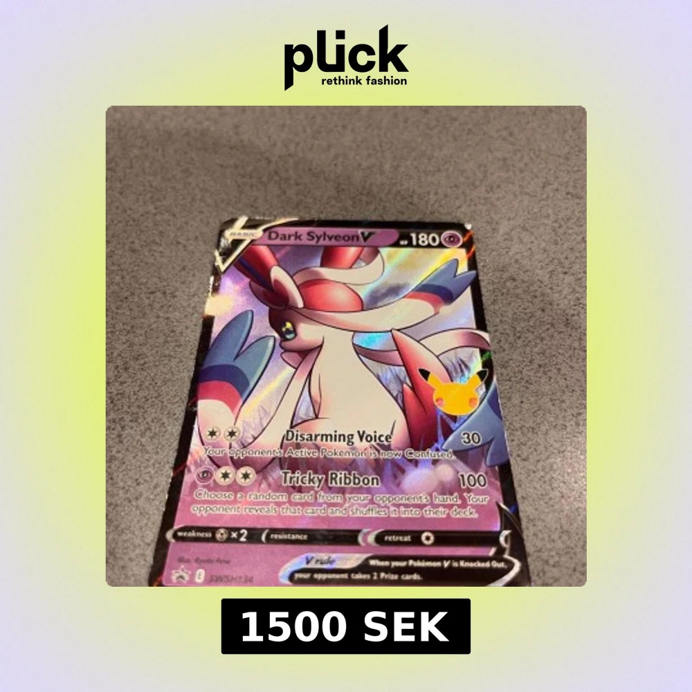 Samlarkort med Dark Sylveon V från Pokémon-serien. Kortet har färgstark design och coola attacker som Disarming Voice och Tricky Ribbon. Perfekt för dig som gillar att samla eller spela Pokémon TCG.