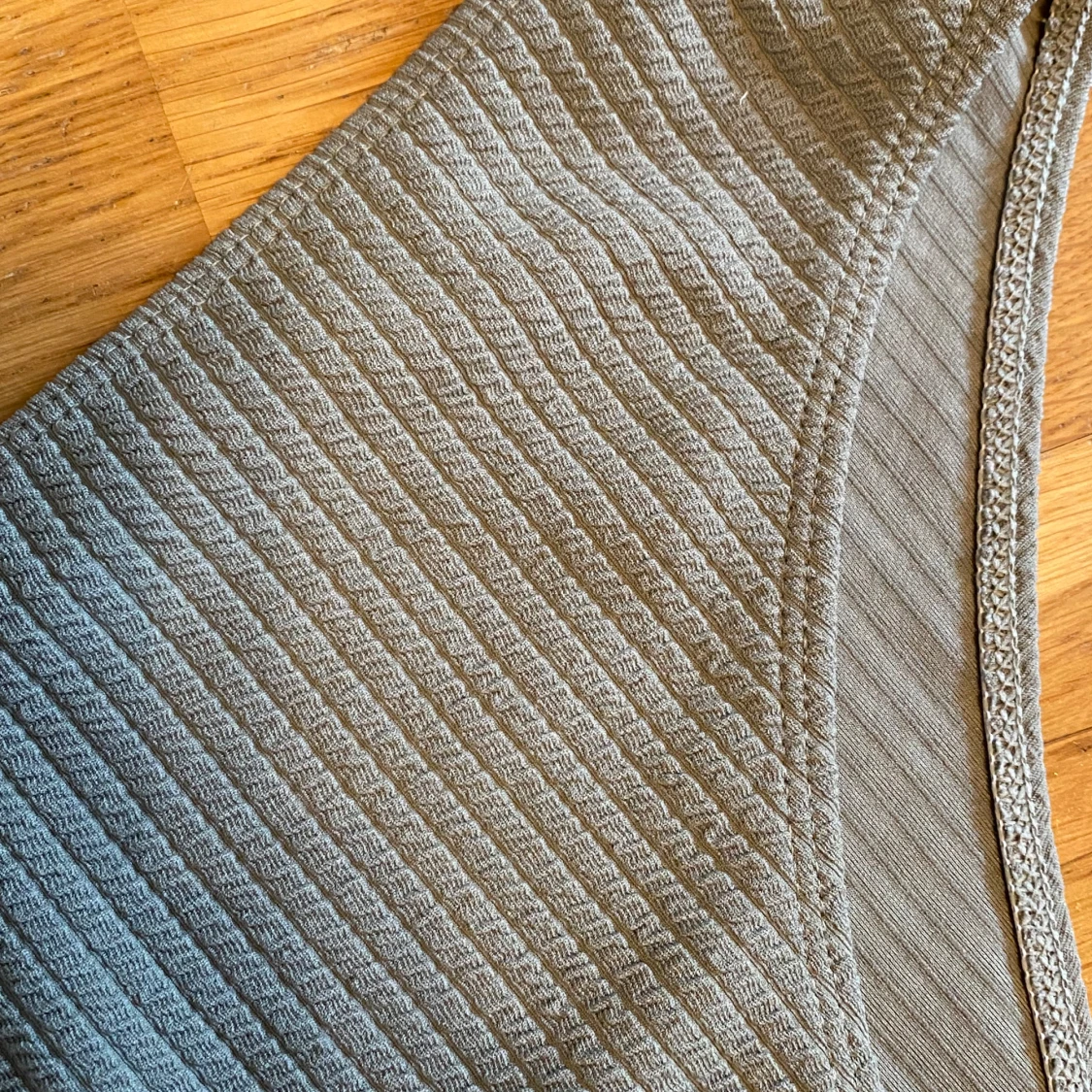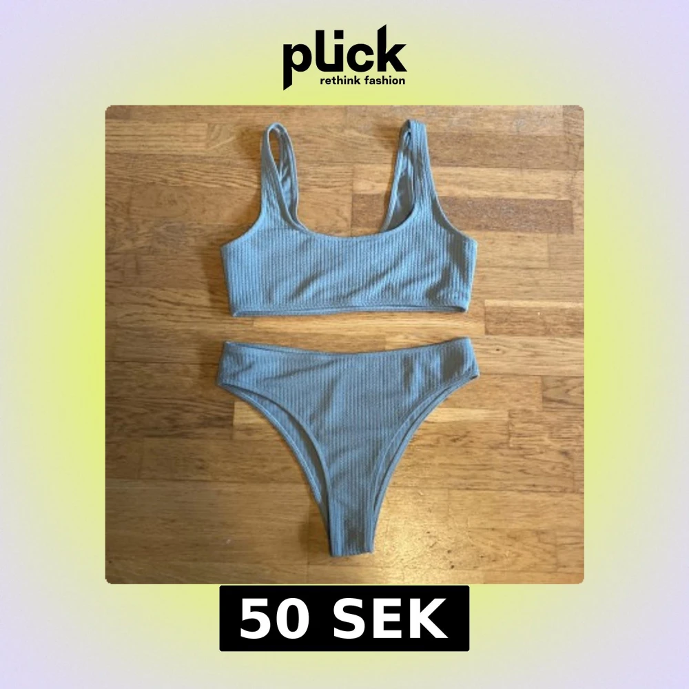 Snygg ljusblå bikini med sportig topp och höga trosor. Båda delarna har ribbad struktur som ger en trendig känsla. Perfekt för stranden eller poolen. Materialet känns mjukt och stretchigt för bästa komfort.