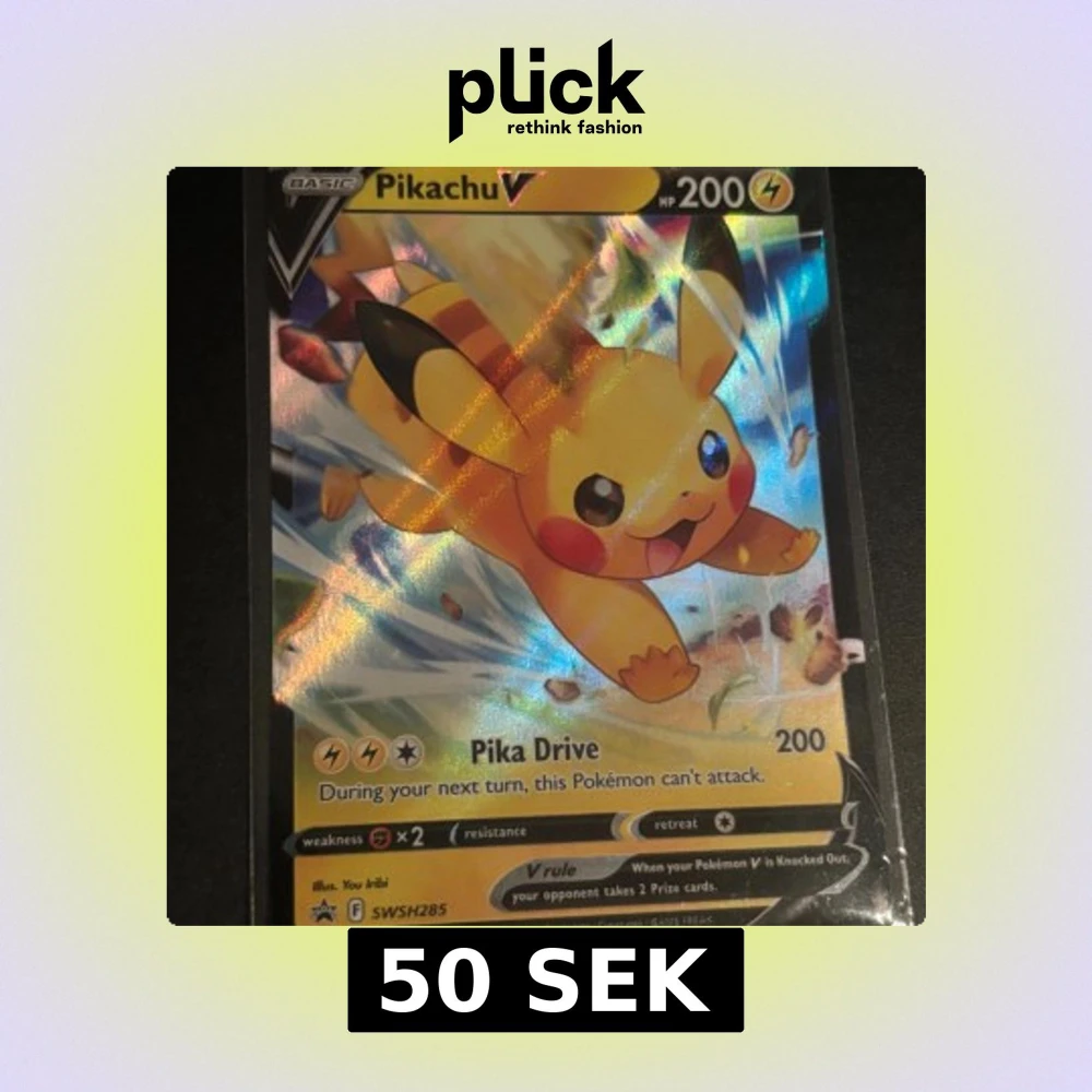 Säljer nu mitt Pikachu V #SWSH285 kort. Väldigt bra skick. Det har varit sleevad sen jag öppnade det och bra förvarad