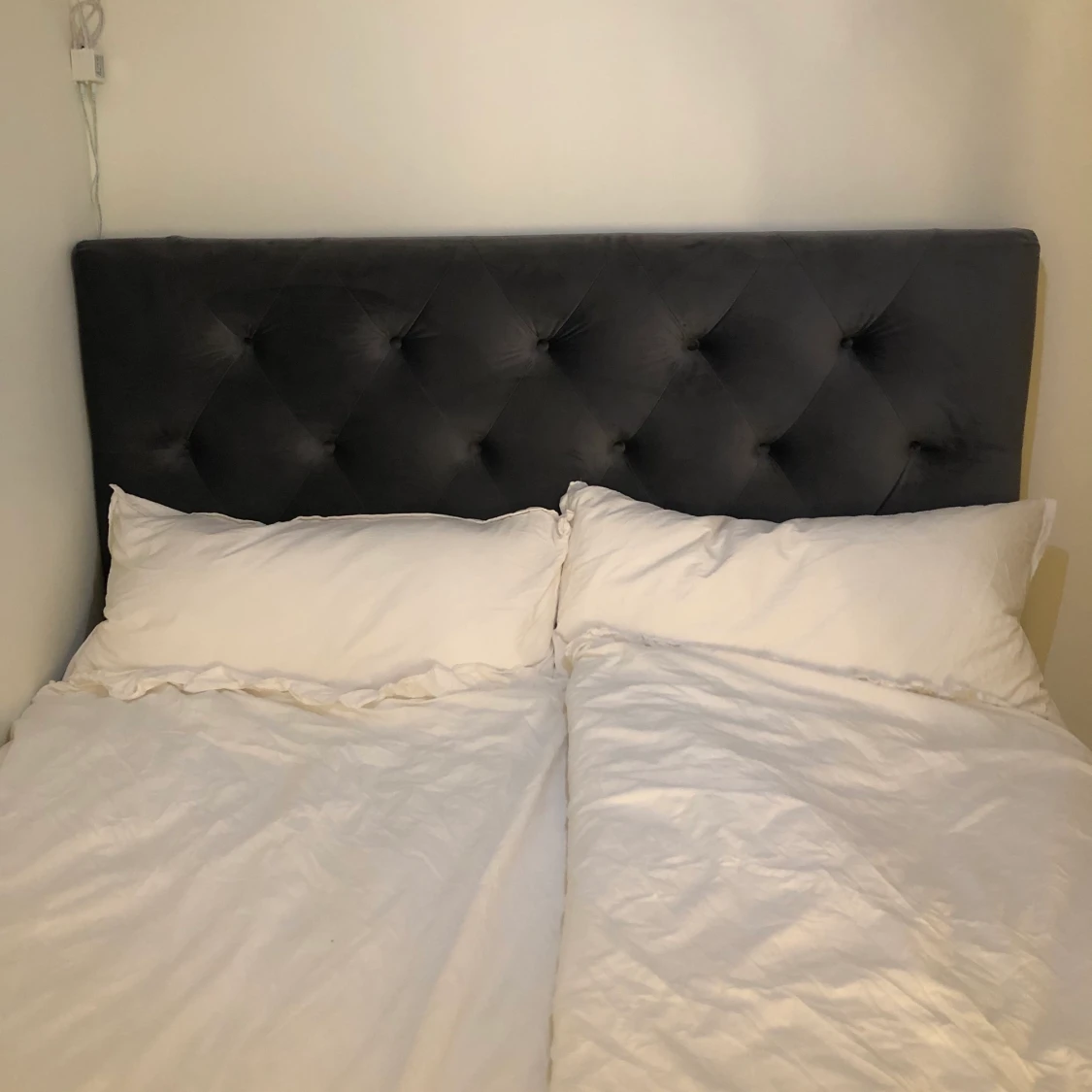 Säljer min huvudgavel från Mio. Den är i ”modellen” New York pikerad, tyg Royal sammet å i färg mellangrå. Mått och dimensioner, Bäddbredd-160 cm, Bredd-160 cm, Djup-14 cm, Höjd-150 cm, Vikt-21,8 kg. Gavelbenen är 19 cm, total höjd på gaveln är 150 cm. Köpte denna gavel för ca 1 år sedan å den är i ett väldigt bra å fint skick. Jag köpte sängstomme+madrass+gavel för sammanlagt 15000kr.