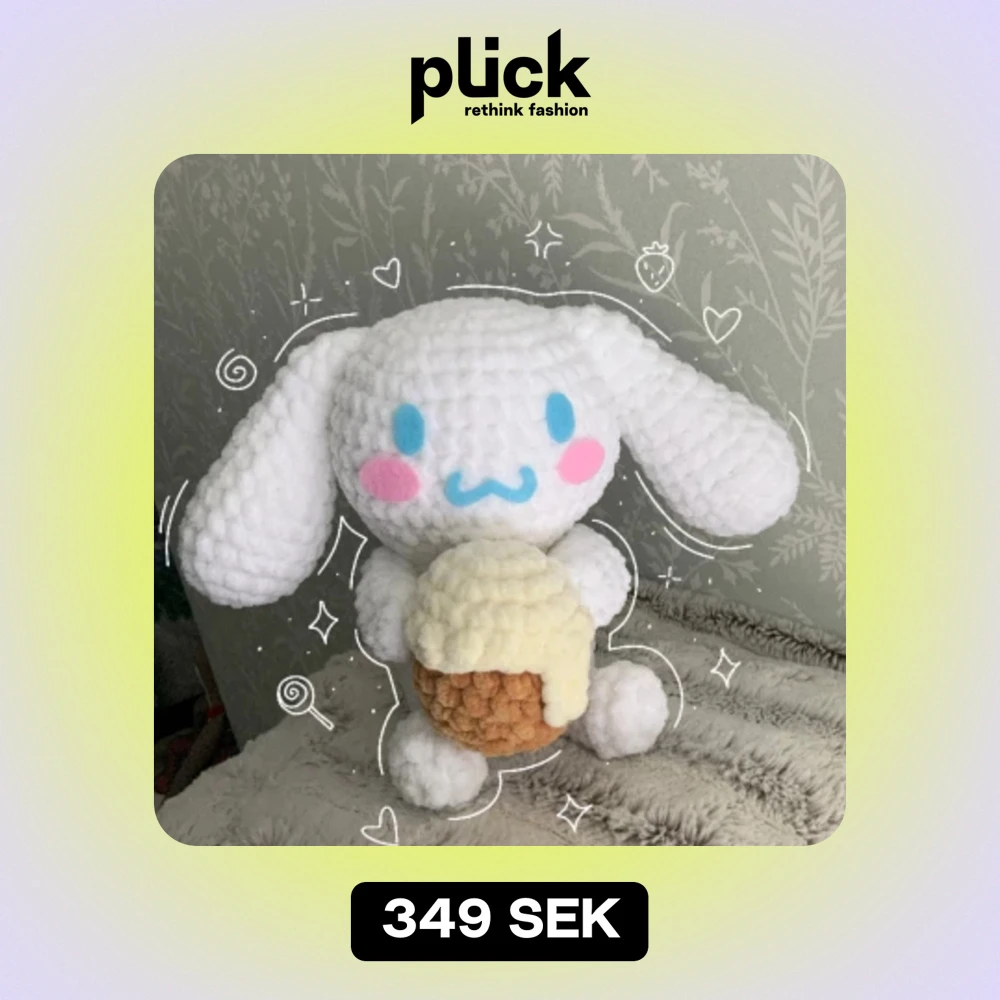 * Handvirkad cinnamoroll * ca 20 cm hög * Virkad i en rök- och djurfri miljö * Dm vid intresse eller frågor * 100% mjuk polyester