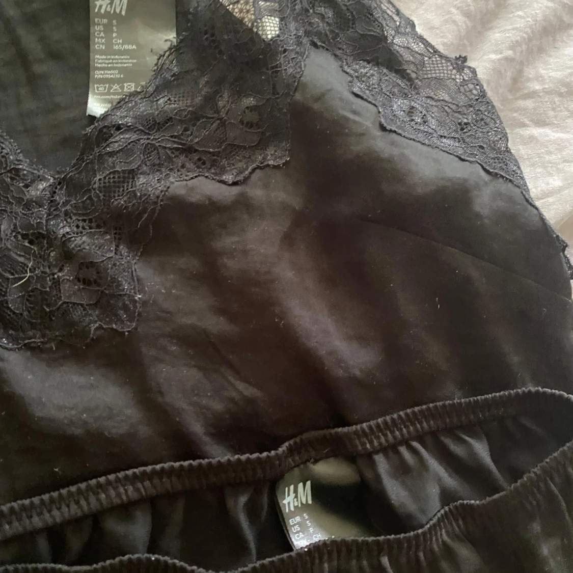 Säljer mitt satinsett från HM då jag inte fått användning för de. Använd vid 1 tillfälle. Både toppen och shortsen är i storlek S!