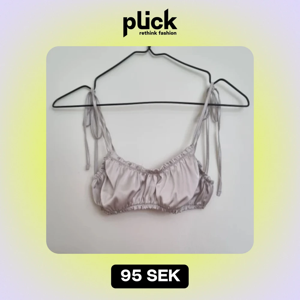 Set från Gina Tricot i storlek S, typ silvrigt men lite åt det beiga. Jättesköna shorts och bh i satinkvalité. Shortsen är lågmidjade och går att justera med snörena. Tyvärr passade det mig inte.