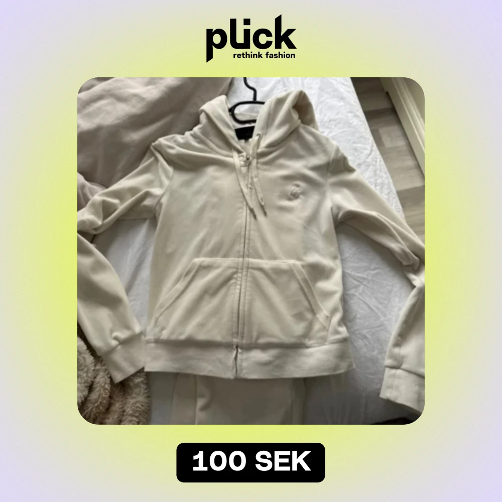 Hej! Säljer ett vitt Juicy Couture set som jag köpte för ett år sedan. Är knappt använt då dem är för långa på mig. Har därmed fått liten fläck längst ner vid benet vilket man kan se å bilden🥰 Pris kan diskuteras.