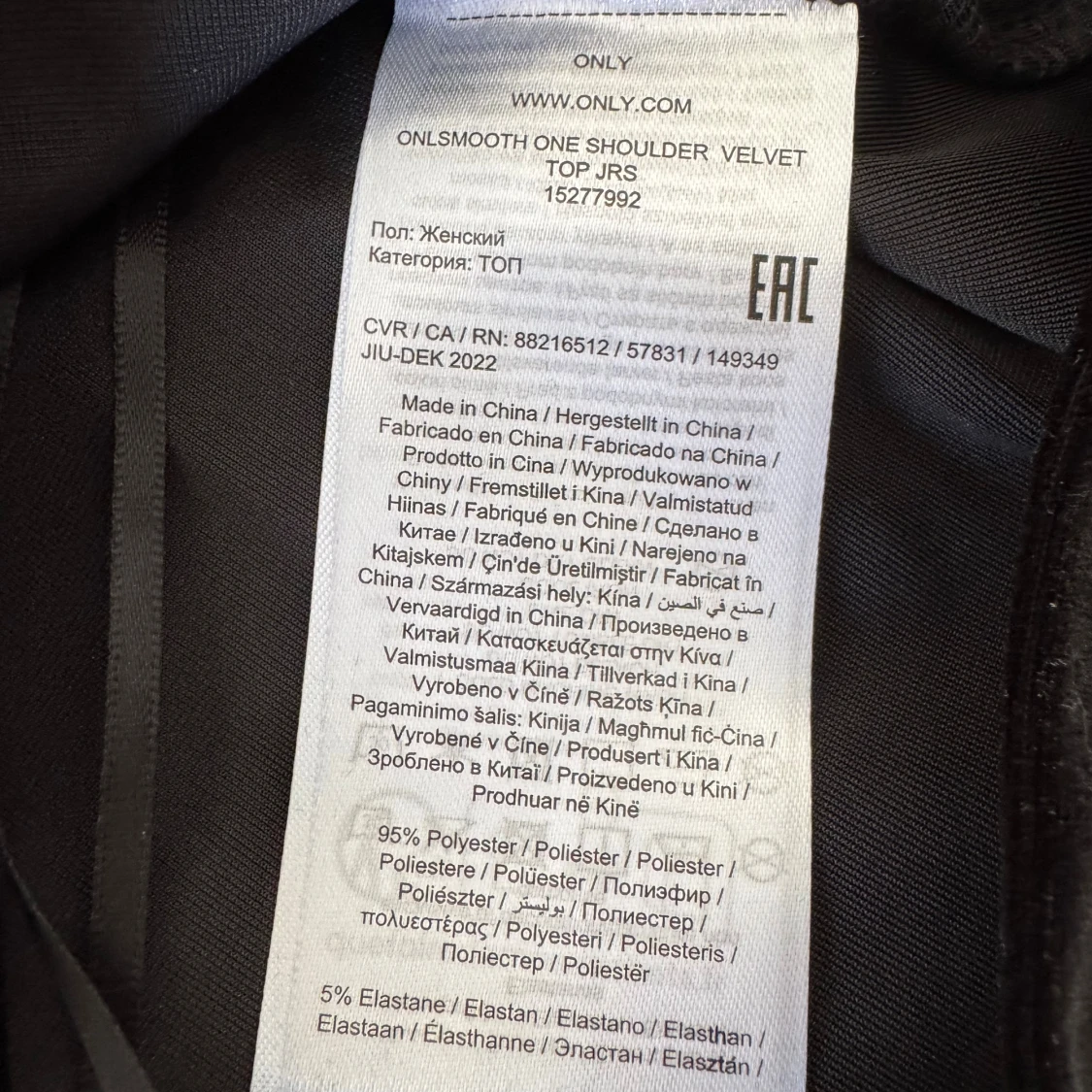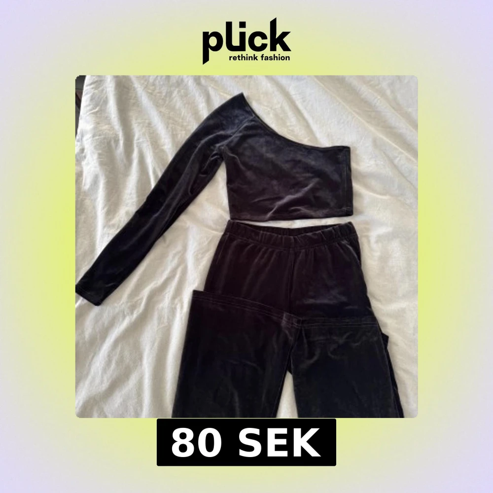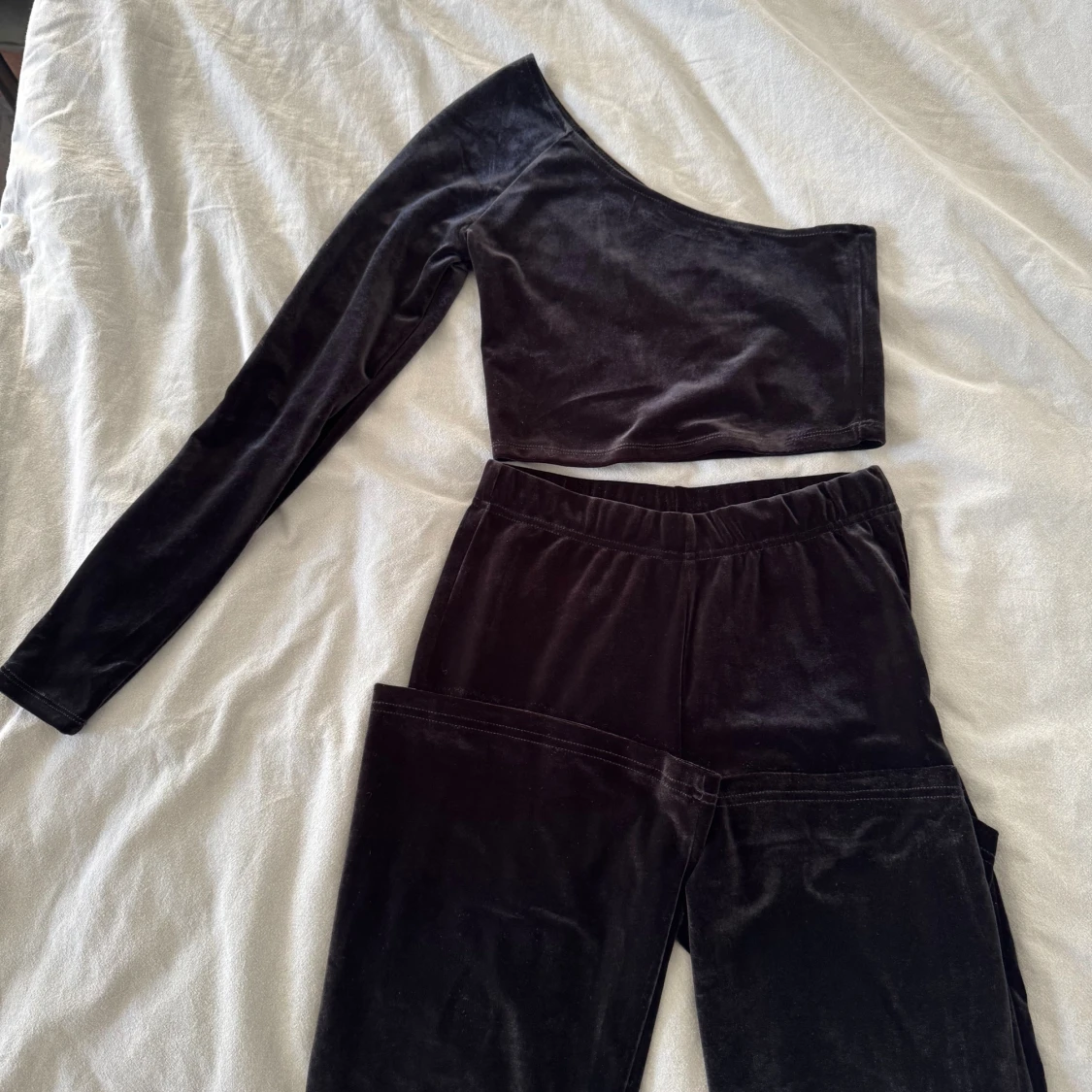 Svart set med en enärmad tröja och ett par byxor i sammet från Only i storlek XS. Har aldrig använts.