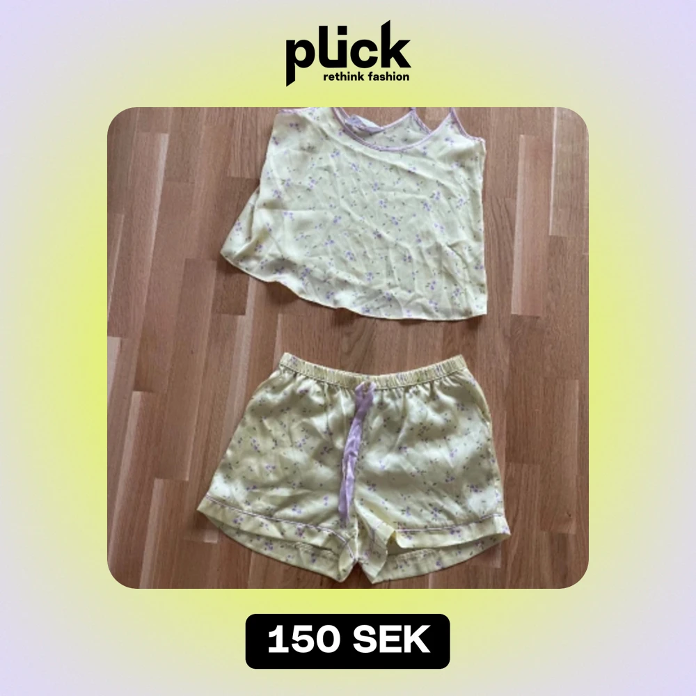 Säljer denna jättesöta siden pyjamasen. Shortsen är använda ett par gånger och toppen är helt oanvänd. Strl XS men skulle säga att den passar S/M.