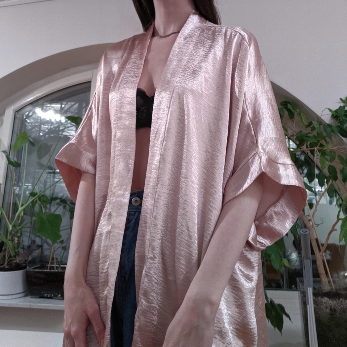 Sååå fin kimono. Fint ljusrosa lystrigt tyg ✨✨✨ lite små"luden"/nopprig på vissa ställen men jag tycker inte det syns. Så himla fin verkligen men insett att jag typ inte använder rosa plagg.