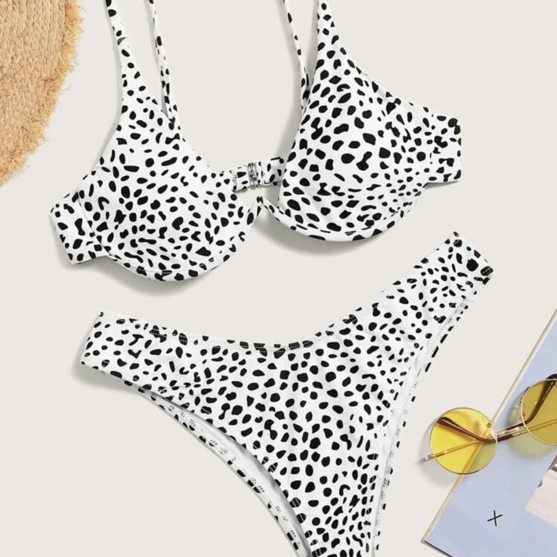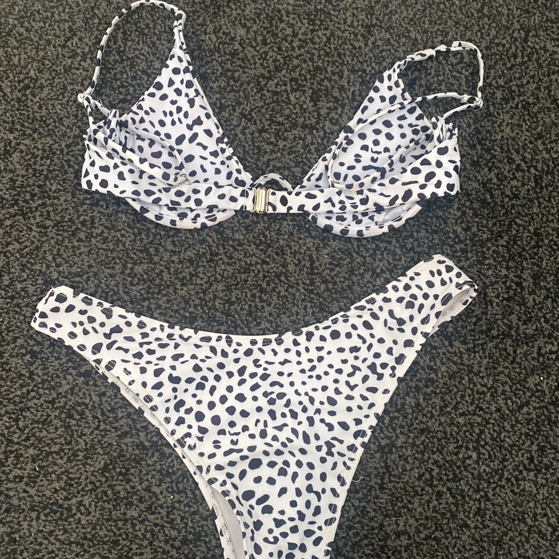 Svart och vit prickig bikini från shein. Använd enstaka gånger. Litelite missfärgad i fram. Storlek M.