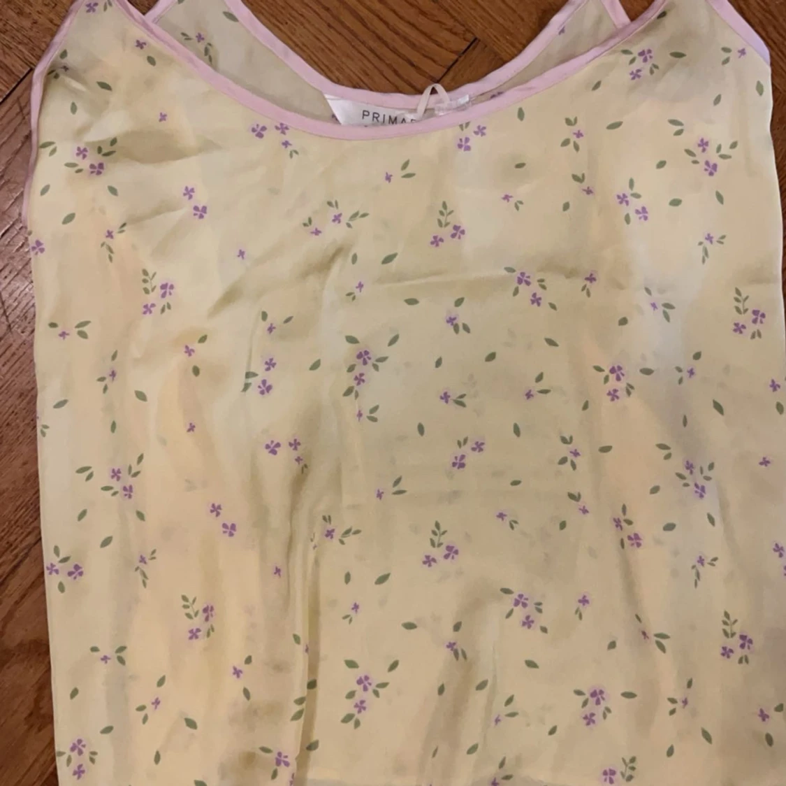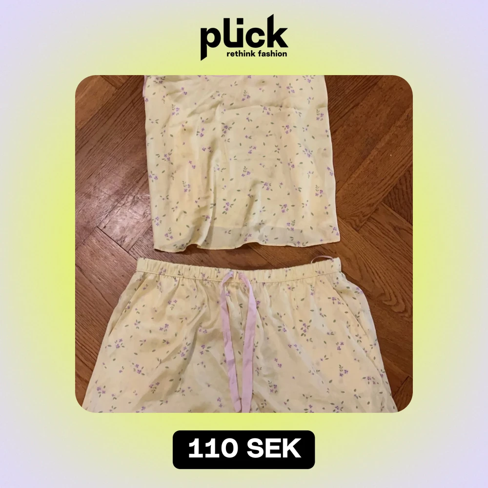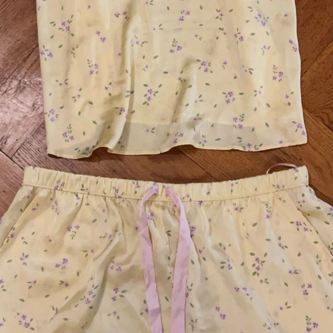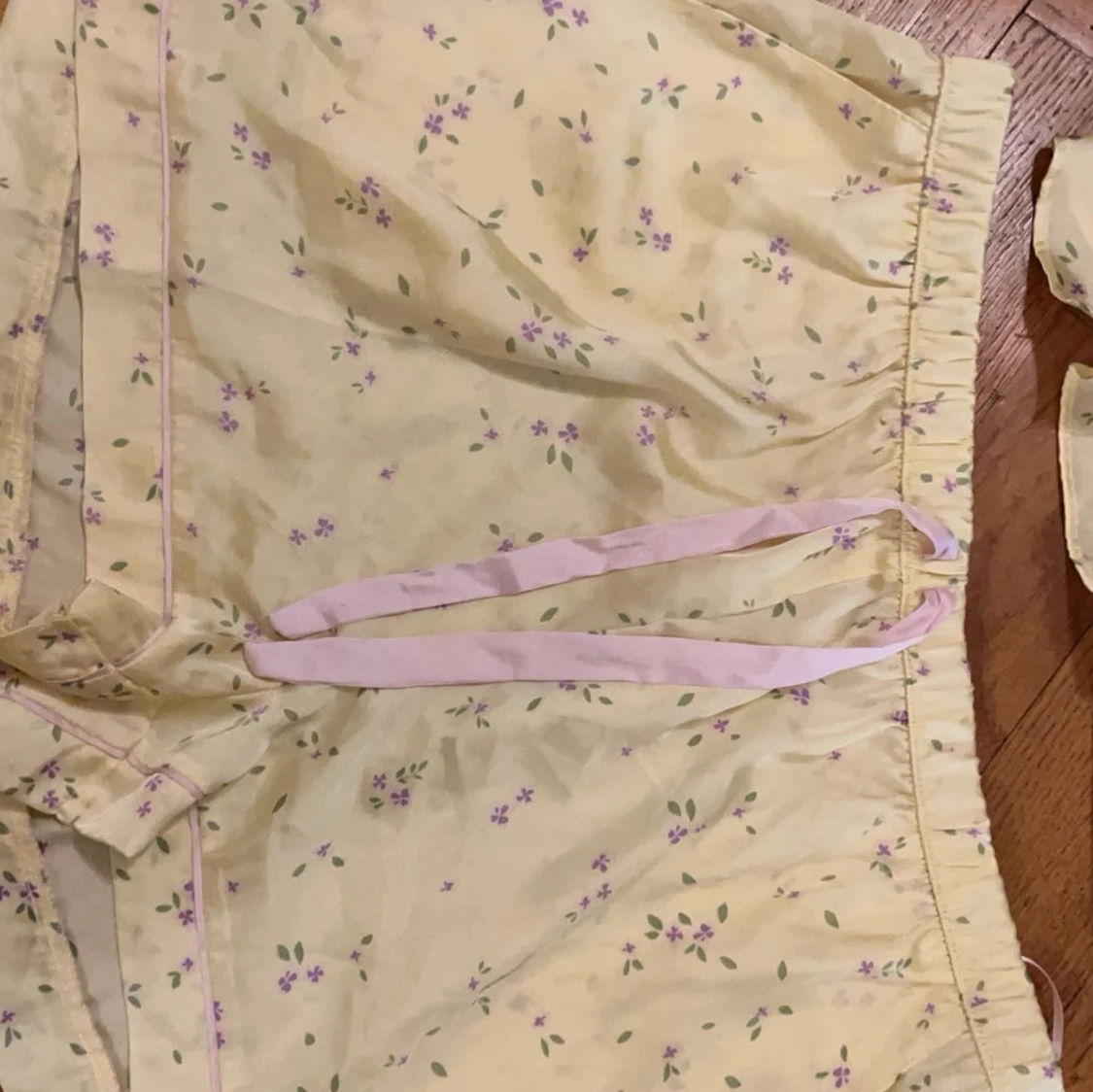 Super söt gul pyjamas med små blommor på i silkes😍 aldrig använd!❤️