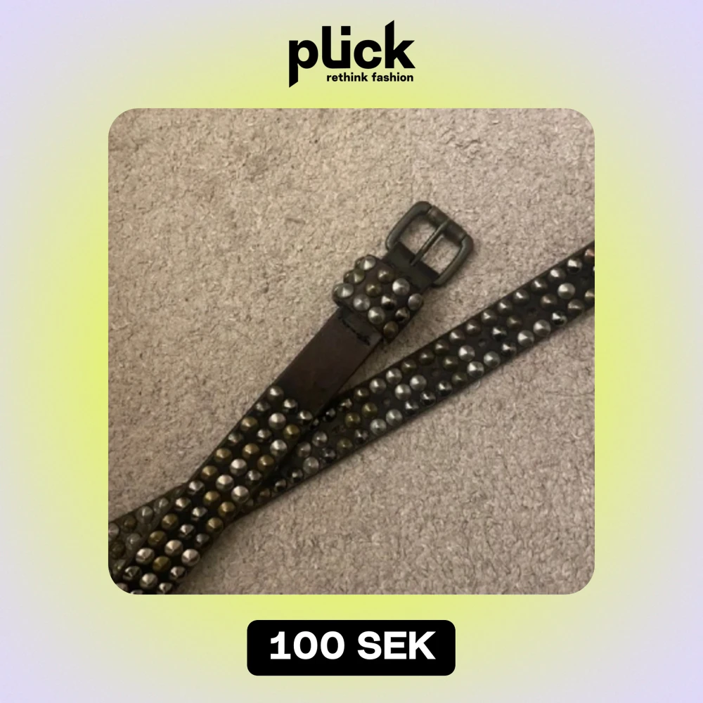 Säljer detta svarta läderskärp med nitar. Längd 95 cm men med flera hål längre in.