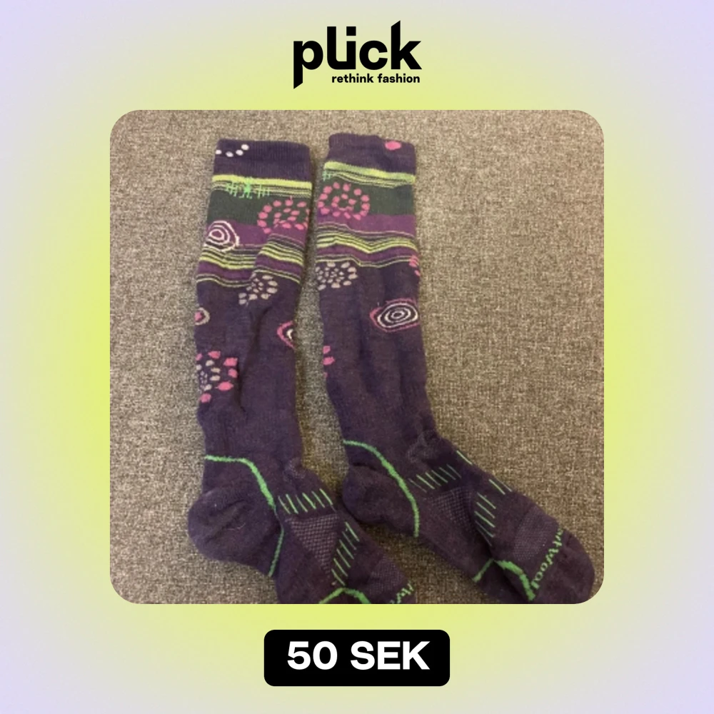 Tjocka varma skidstrumpor från smartwool i ull. Hittar ej storleksmarkering men jag är 36 och kan ha dem. Lite noppriga.