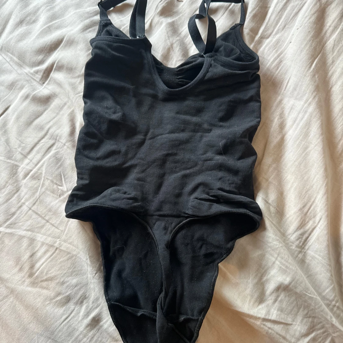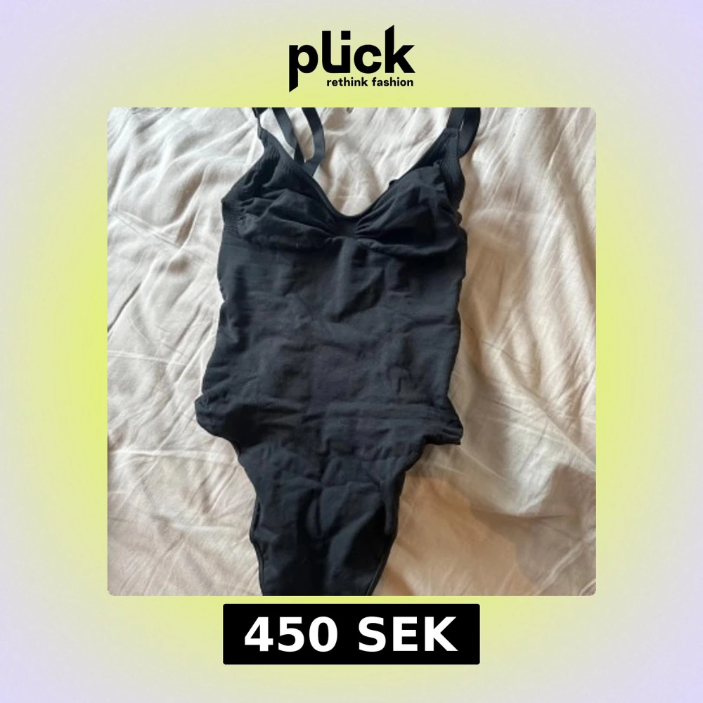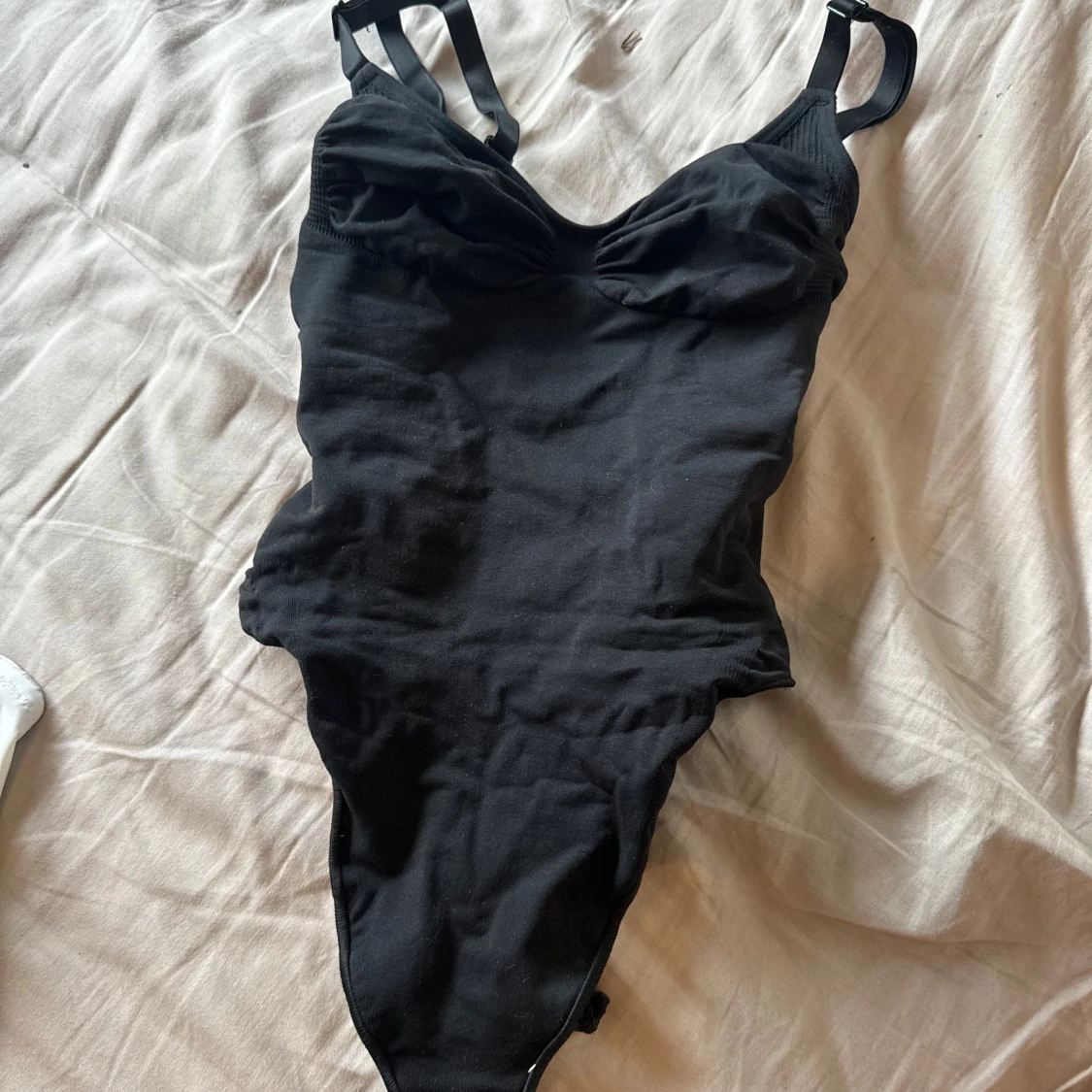 Snygg svart body från Skims med justerbara axelband och lätt v-ringad hals. Modellen är enkel och stilren, perfekt för dig som gillar en klassisk look på stranden eller vid poolen. Materialet är mjukt och följsamt för en bekväm passform.