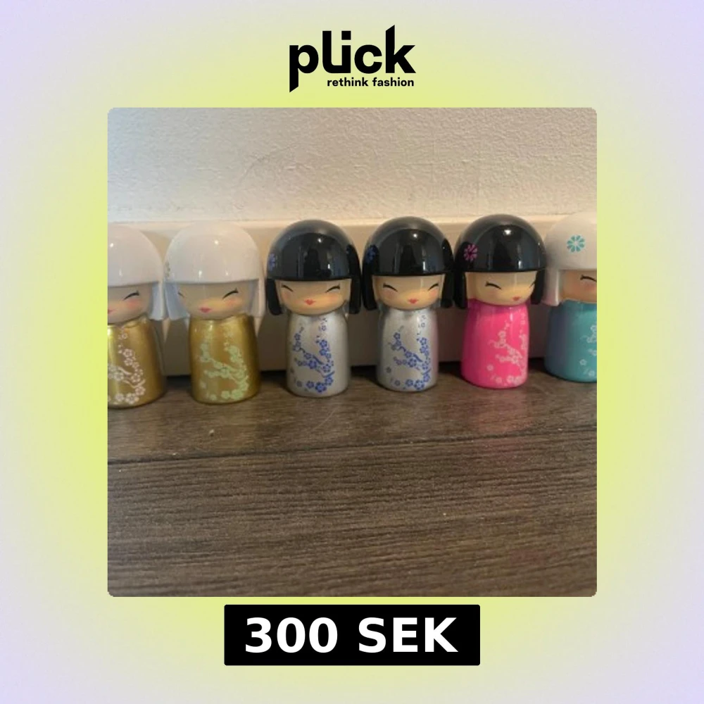 6st eftertraktade skincity Kokeshi dockor. I paketet finns: 2 st guldiga med den ena vita detaljer och den andra gröna detaljer med vit frisyr, 2st gråa med blåa detaljer och svart frisyr, 1 skrikorna med vita detaljer och svart frisyr, 1 blå med vita detaljer och vit frisyr. Styck pris: 59kr paketpris: 300kr