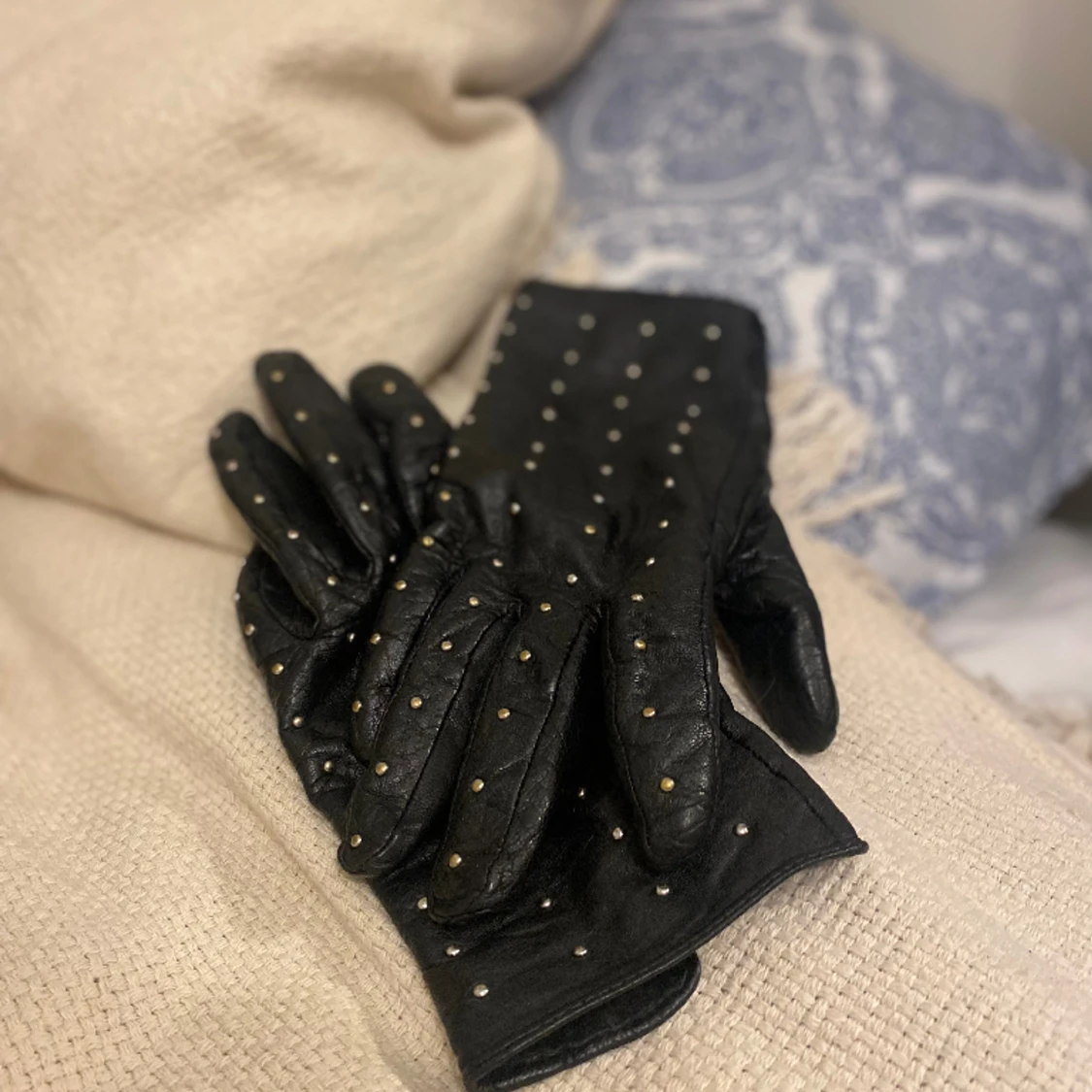 Svarta skinnhandskar med metall droppar på . Storlek XS/S