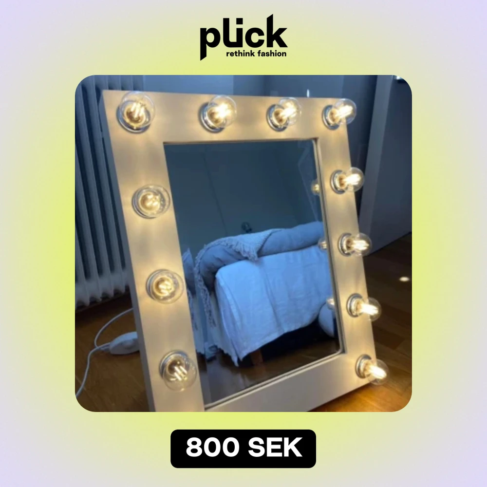 Sminkspegel med ledbelysning och dimerfunktion från sminkspegel.se (modell Chloe). Medföljer ytterligare 12 original lampor i kartong. Hämtas upp i Östertälje, Södertälje