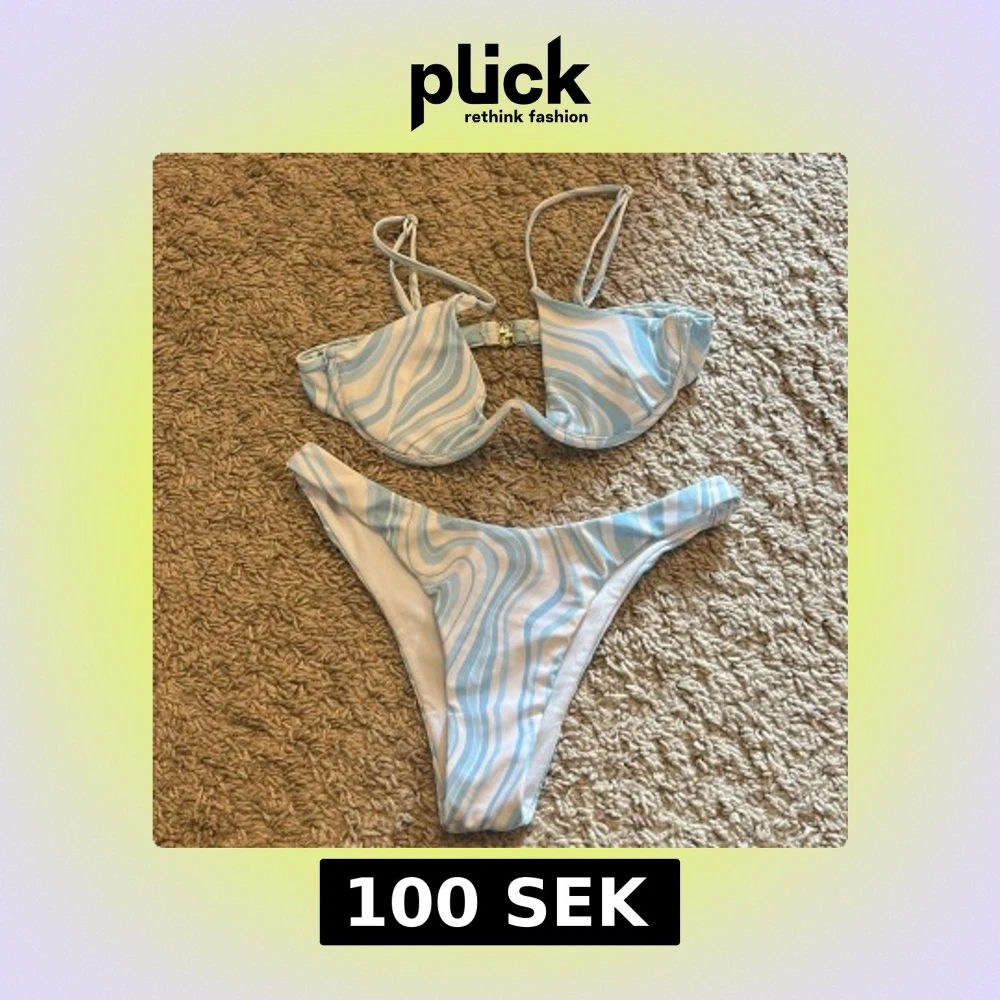 Superfin bikini i en härlig blå och vit färg! Överdelen har bygel och smala axelband med spänne i ryggen. Båda delarna är i storlek XS🩵🤍